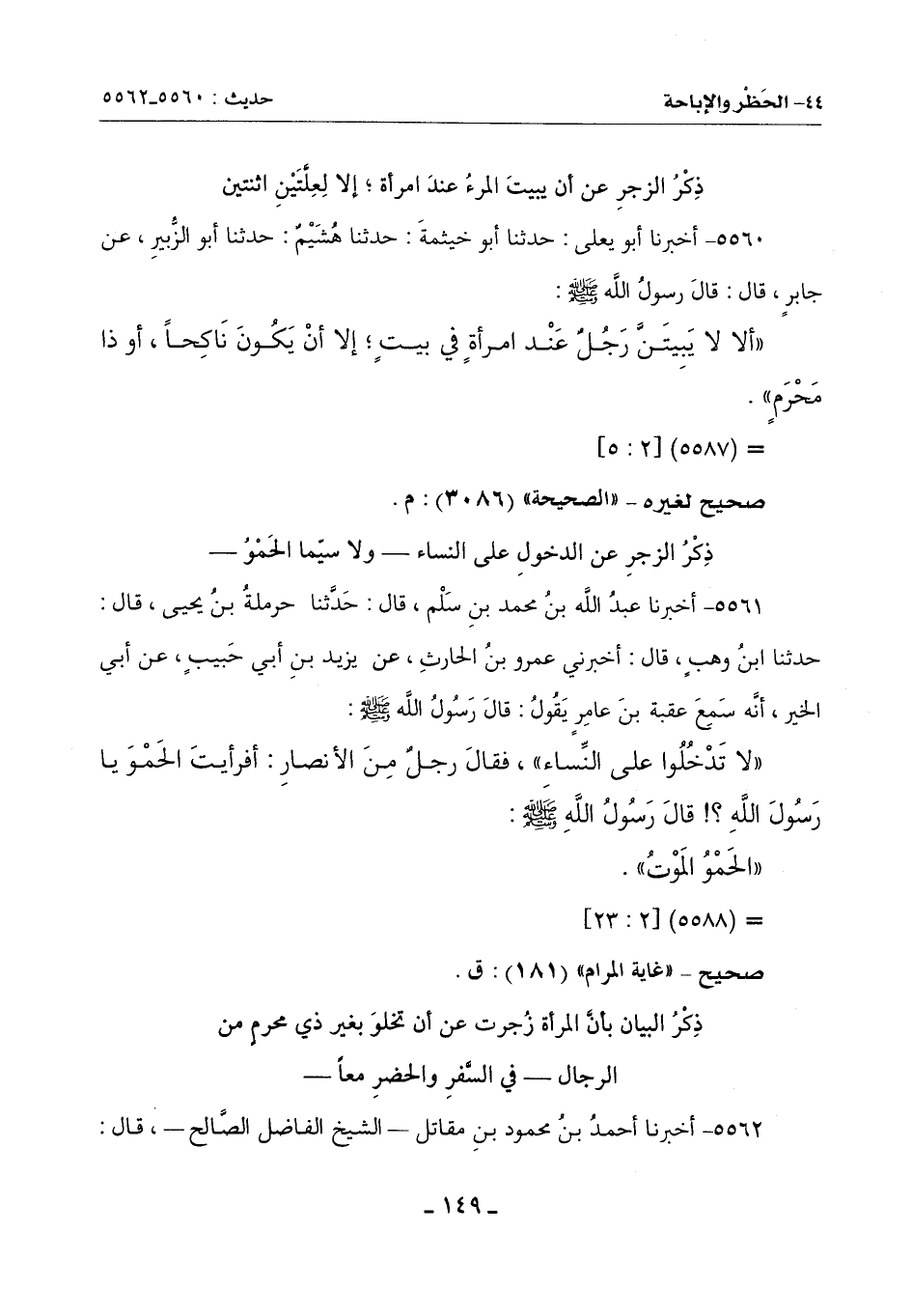 ذِكْرُ الزَّجْرِ عَنِ الدُّخُولِ عَلَى النِّسَاءِ وَلَا سيما الحمو