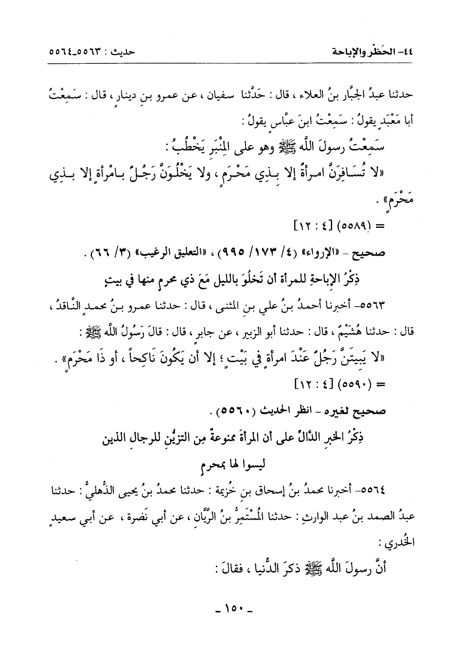 5564 - أَخْبَرَنَا مُحَمَّدُ بْنُ إِسْحَاقَ بْنِ خُزَيْمَةَ: حَدَّثَنَا مُحَمَّدُ بْنُ يَحْيَى الذُّهْلِيُّ: حَدَّثَنَا عَبْدُ الصَّمَدِ بْنُ عَبْدِ الْوَارِثِ: حَدَّثَنَا الْمُسْتَمِرُّ بْنُ الرَّيَّانِ , عَنْ أَبِي نَضْرَةَ , عَنْ أَبِي سَعِيدٍ الْخُدْرِيِّ: