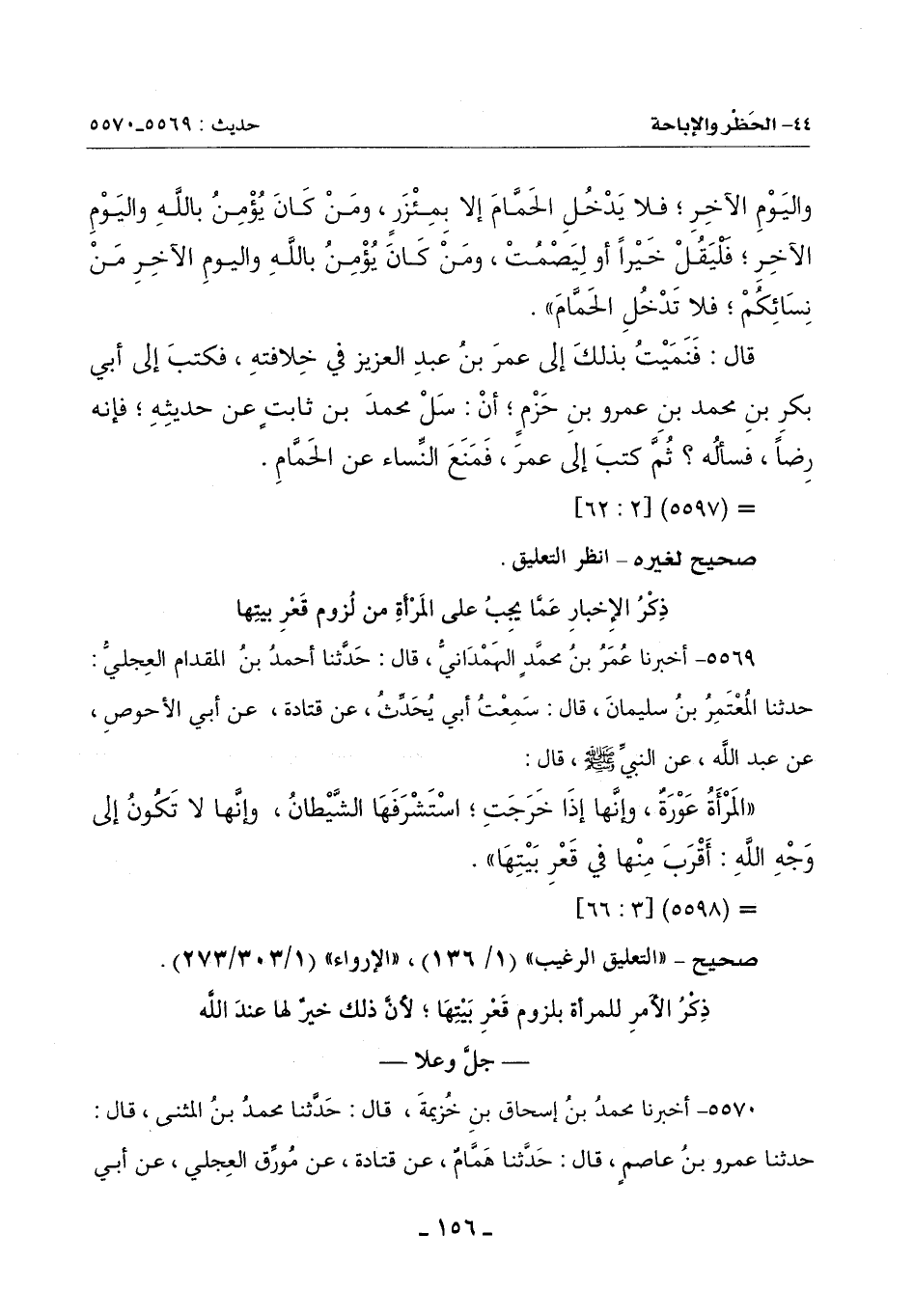 5570 - أَخْبَرَنَا مُحَمَّدُ بْنُ إِسْحَاقَ بْنِ خُزَيْمَةَ , قَالَ: حَدَّثَنَا مُحَمَّدُ بْنُ الْمُثَنَّى , قَالَ: حَدَّثَنَا عَمْرُو بْنُ عَاصِمٍ , قَالَ: حَدَّثَنَا هَمَّامٌ , عَنْ قَتَادَةَ , عَنْ مُورِّق الْعِجْلِيِّ , عَنْ أَبِي -[157]- الْأَحْوَصِ , عَنْ عَبْدِ اللَّهِ , عَنِ النَّبِيِّ صَلَّى اللَّهُ عَلَيْهِ وَسَلَّمَ قَالَ: