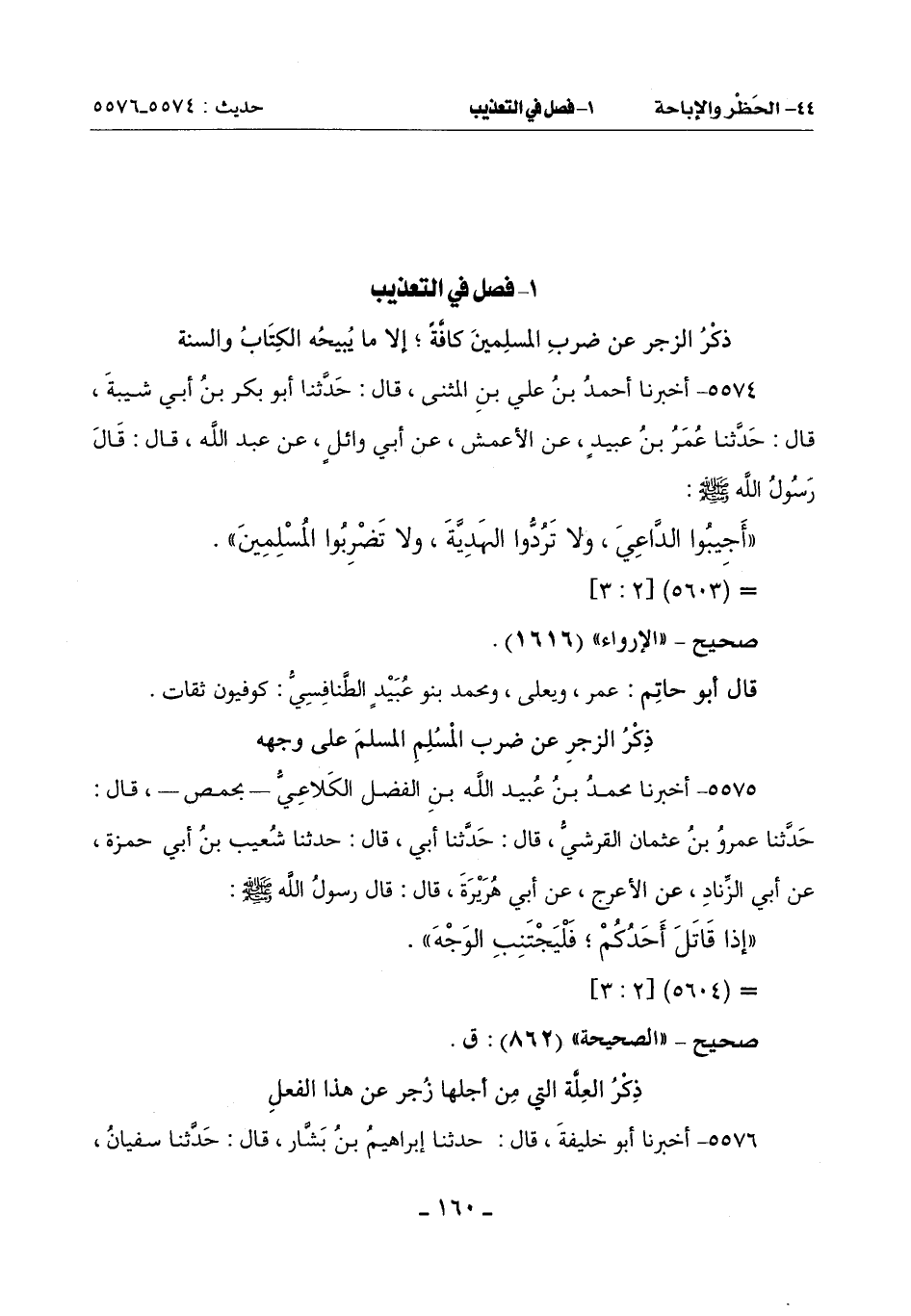 ذِكْرُ الزَّجْرِ عَنْ ضَرْبِ المسلِمِ المسلمَ عَلَى وجهه