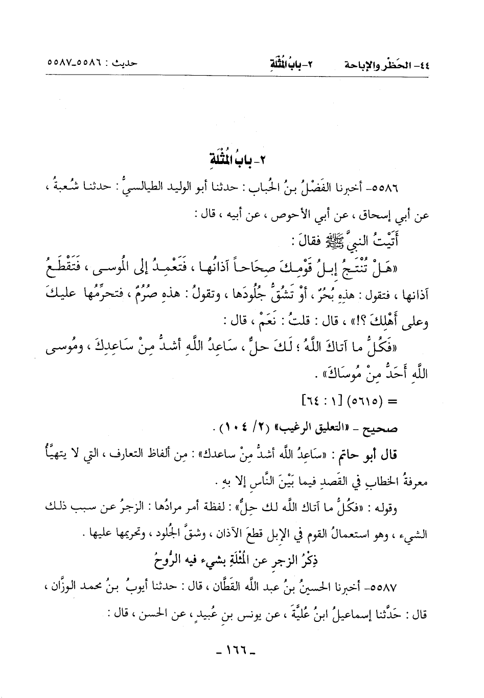 5587 - أَخْبَرَنَا الْحُسَيْنُ بْنُ عَبْدِ اللَّهِ الْقَطَّانُ , قَالَ: حَدَّثَنَا أَيُّوبُ بْنُ مُحَمَّدٍ الْوَزَّانُ , قَالَ: حَدَّثَنَا إِسْمَاعِيلُ ابْنُ عُلَيَّةَ , عَنْ يُونُسَ بْنِ عُبَيْدٍ , عَنِ الْحَسَنِ , قَالَ: -[167]-