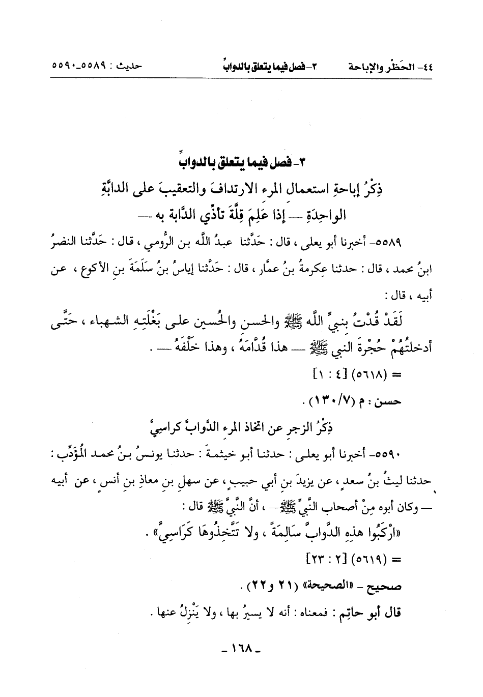 ذِكْرُ الزَّجْرِ عَنِ اتِّخَاذِ الْمَرْءِ الدَّوابَّ كراسِيَّ