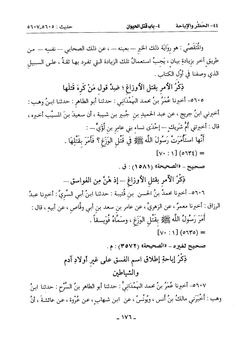 ذِكْرُ الْأَمْرِ بِقَتْلِ الْأَوْزَاغِ إِذْ هُنَّ مِنَ الفواسق
