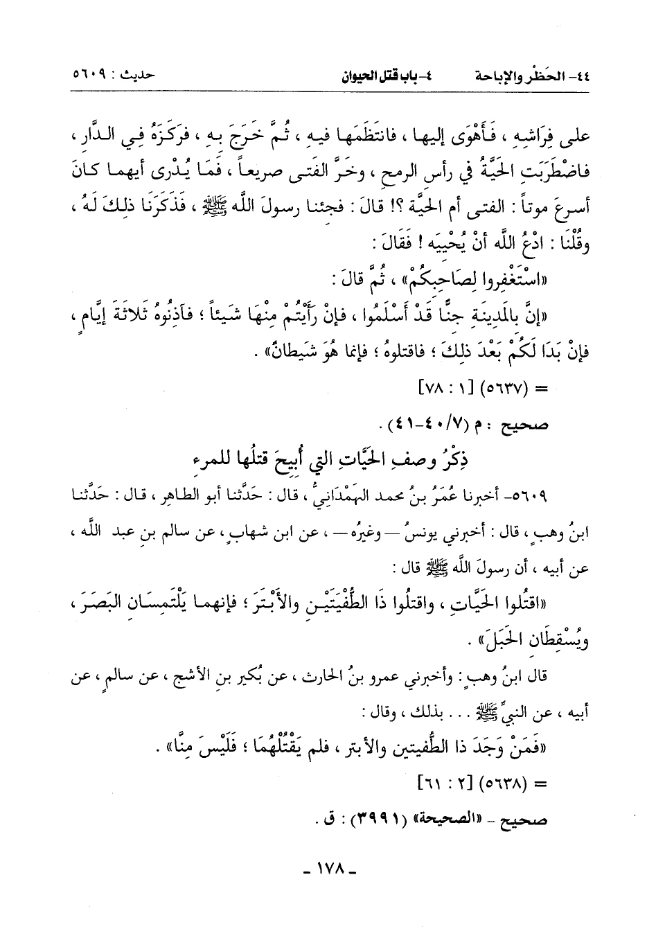 ((فَمَنْ وَجَدَ ذَا الطُّفيتين وَالْأَبْتَرَ, فلم يَقْتُلْهُمَا؛ فليس منا)).