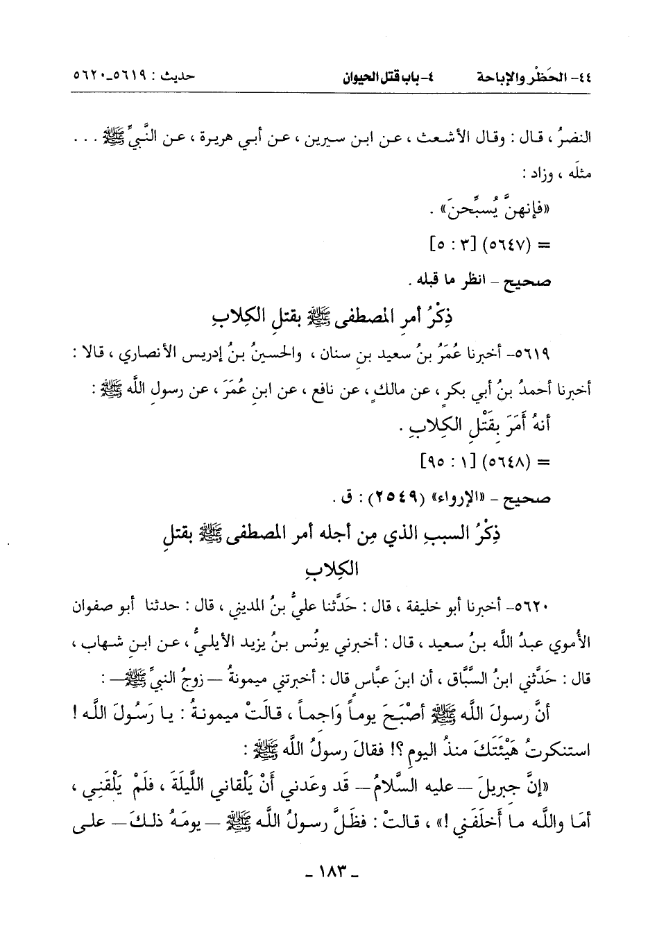 أنه أَمَرَ بِقَتْلِ الكِلابِ.