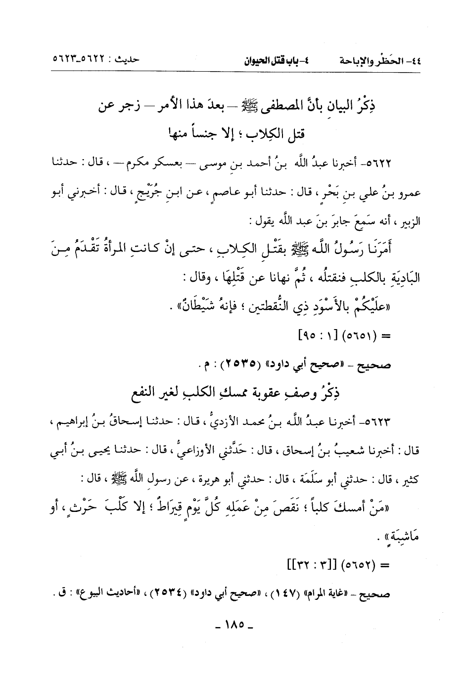 ذِكْرُ الْبَيَانِ بِأَنَّ الْمُصْطَفَى صَلَّى اللَّهُ عَلَيْهِ وَسَلَّمَ بَعْدَ هَذَا الْأَمْرِ زَجَرَ عَنْ قَتْلِ الْكِلَابِ إِلَّا جِنْسًا مِنْهَا