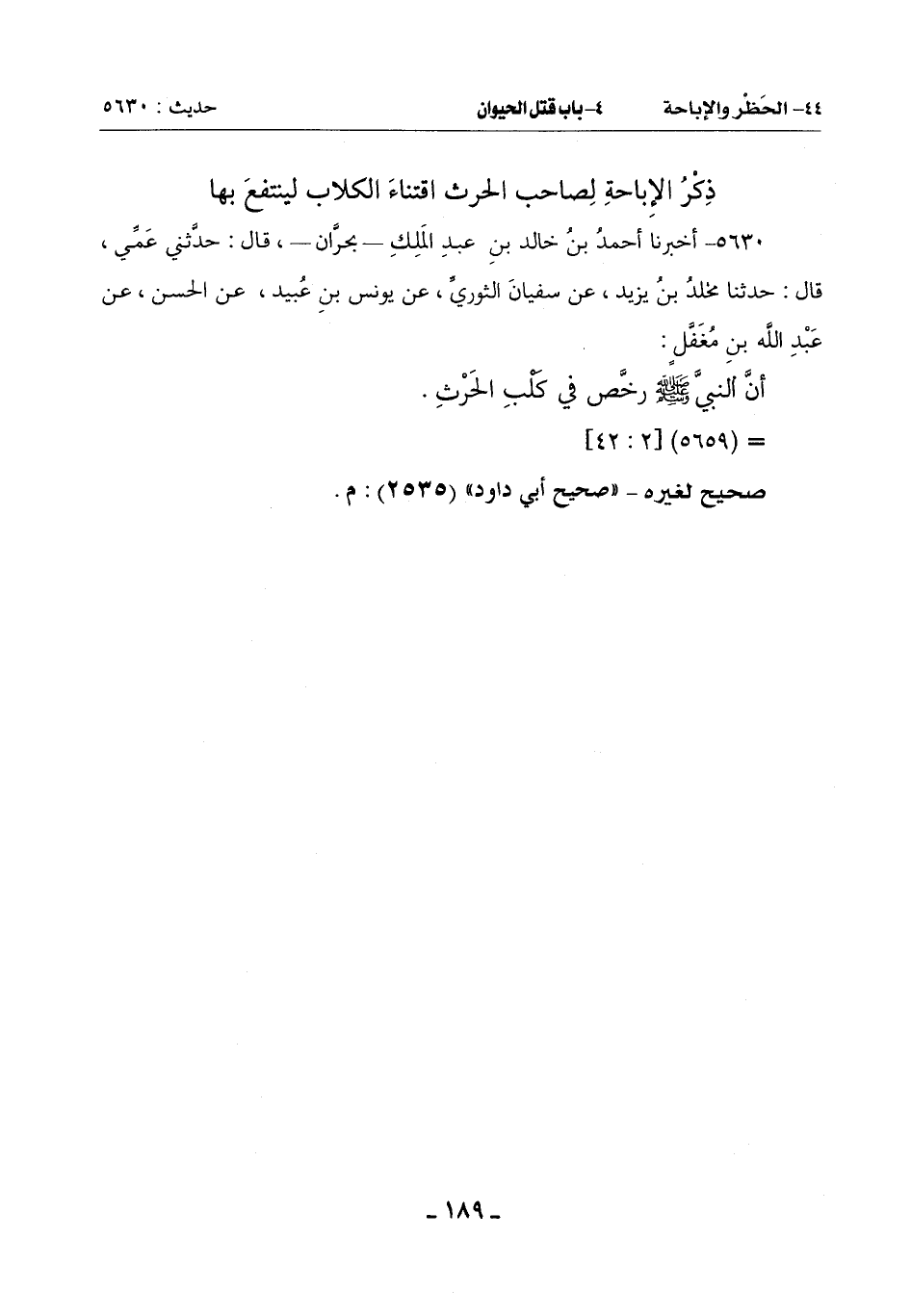 5630 - أَخْبَرَنَا أَحْمَدُ بْنُ خَالِدِ بْنِ عَبْدِ الْمَلِكِ - بِحَرَّانَ - , قَالَ: حَدَّثَنِي عَمِّي , قَالَ: حَدَّثَنَا مَخْلَدُ بْنُ يَزِيدَ , عَنْ سُفْيَانَ الثَّوْرِيِّ , عَنْ يُونُسَ بْنِ عُبَيْدٍ , عَنِ الْحَسَنِ , عَنْ عبد الله بْنِ مُغَفَّلٍ: