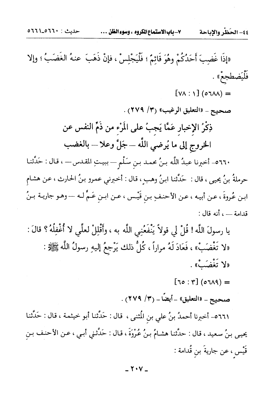 ((لَا تغضبْ)) , فَعَادَ لَهُ مِرَارًا , كُلُّ ذَلِكَ يَرْجِعُ إِلَيْهِ رَسُولُ اللَّهِ صَلَّى اللَّهُ عَلَيْهِ وَسَلَّمَ: