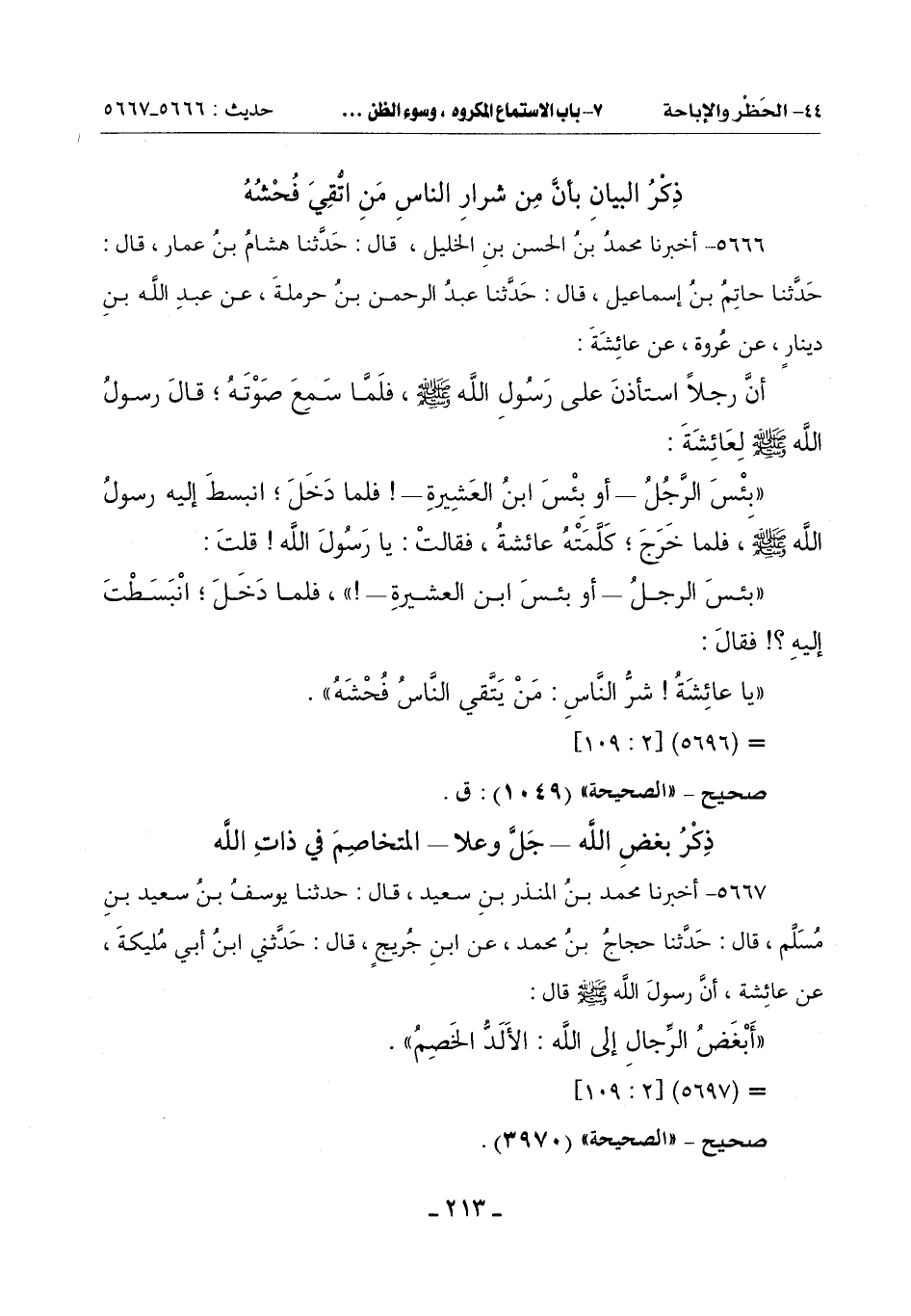 ((يَا عَائِشَةُ! شرُّ الناس: من يَتَّقي الناس فُحْشَهُ)).