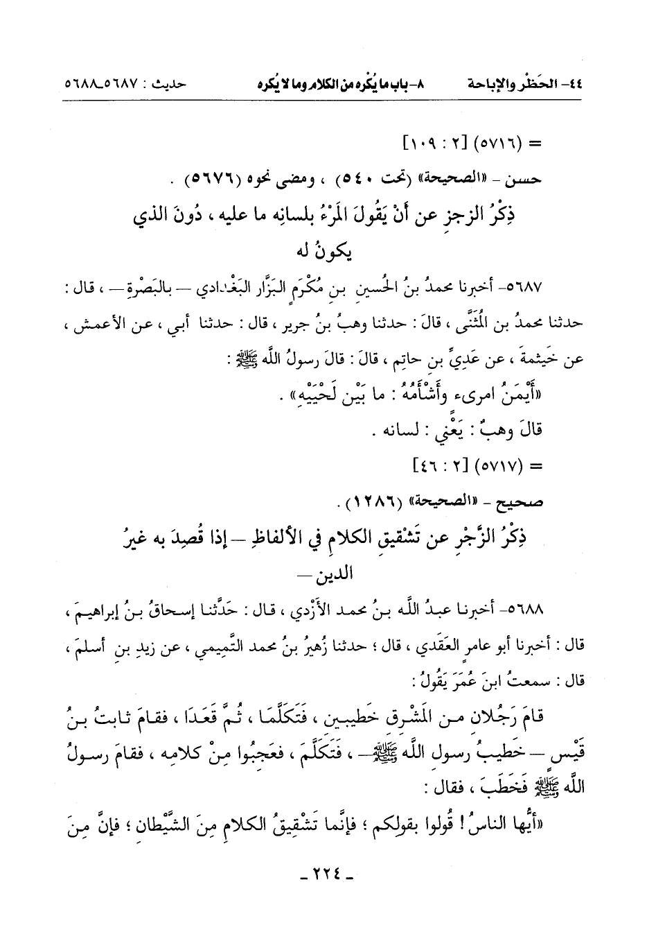 ذِكْرُ الزَّجْرِ عَنْ تَشْقِيقِ الْكَلَامِ فِي الْأَلْفَاظِ إِذَا قُصِدَ بِهِ غَيْرُ الدِّينِ