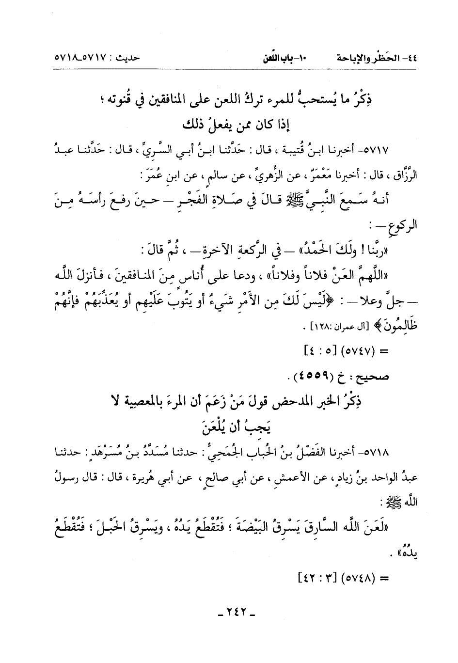5717 - أَخْبَرَنَا ابْنُ قُتَيْبَةَ , قَالَ: حَدَّثَنَا ابْنُ أَبِي السَّرِيِّ , قَالَ: حَدَّثَنَا عَبْدُ الرَّزَّاقِ , قَالَ: أَخْبَرَنَا مَعْمَرٌ , عَنِ الزُّهْرِيِّ , عَنْ سَالِمٍ , عَنِ ابْنِ عُمَرَ: