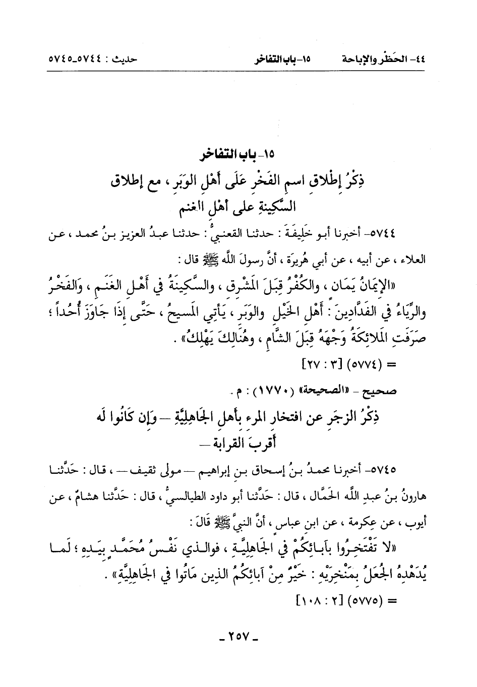 ذِكْرُ إِطْلَاقِ اسْمِ الْفَخْرِ عَلَى أَهْلِ الْوَبَرِ مَعَ إِطْلَاقِ السَّكِينَةِ عَلَى أَهْلِ الْغَنَمِ