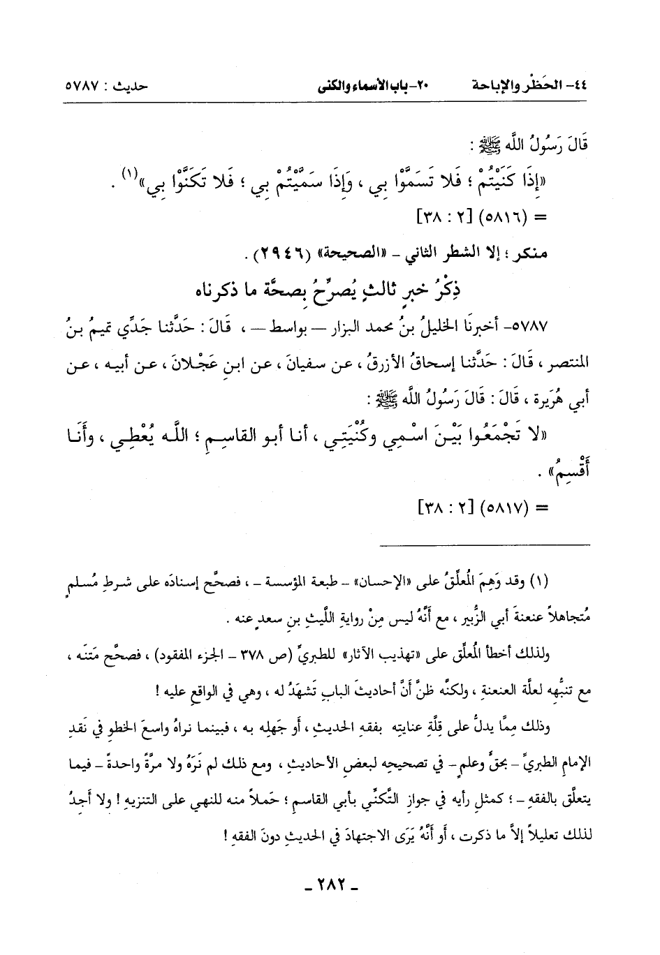 ((لا تَجْمَعُوا بَيْنَ اسْمِي وكُنْيتي , أَنَا أَبُو الْقَاسِمِ؛ الله يُعطي , وأنا أَقْسِمُ)).