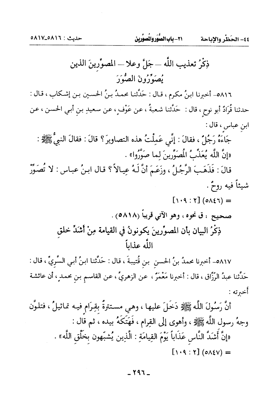5816 - أَخْبَرَنَا ابْنُ مُكْرَمٍ , قَالَ: حَدَّثَنَا مُحَمَّدُ بْنُ الْحُسَيْنِ بْنِ إِشْكَابٍ , قَالَ: حَدَّثَنَا قُرَادٌ أَبُو نُوحٍ , قَالَ: حَدَّثَنَا شُعْبَةُ , عَنْ عَوْفٍ , عَنْ سَعِيدِ بْنِ أَبِي الْحَسَنِ , عَنِ ابْنِ عَبَّاسٍ قَالَ: