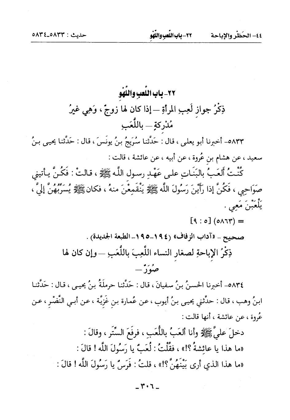 22 - بَابُ اللَّعِبِ وَاللَّهْوِ