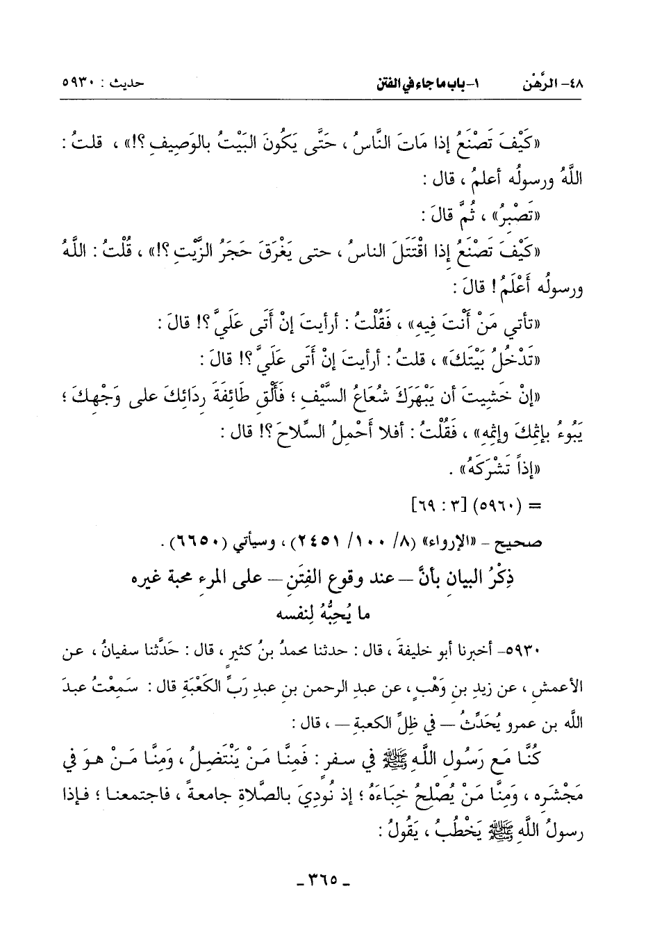 ذِكْرُ الْبَيَانِ بِأَنَّ ـ عِنْدَ وُقُوعِ الْفِتَنِ ـ عَلَى الْمَرْءِ مَحَبَّةُ غَيْرِهِ مَا يُحِبُّهُ لِنَفْسِهِ