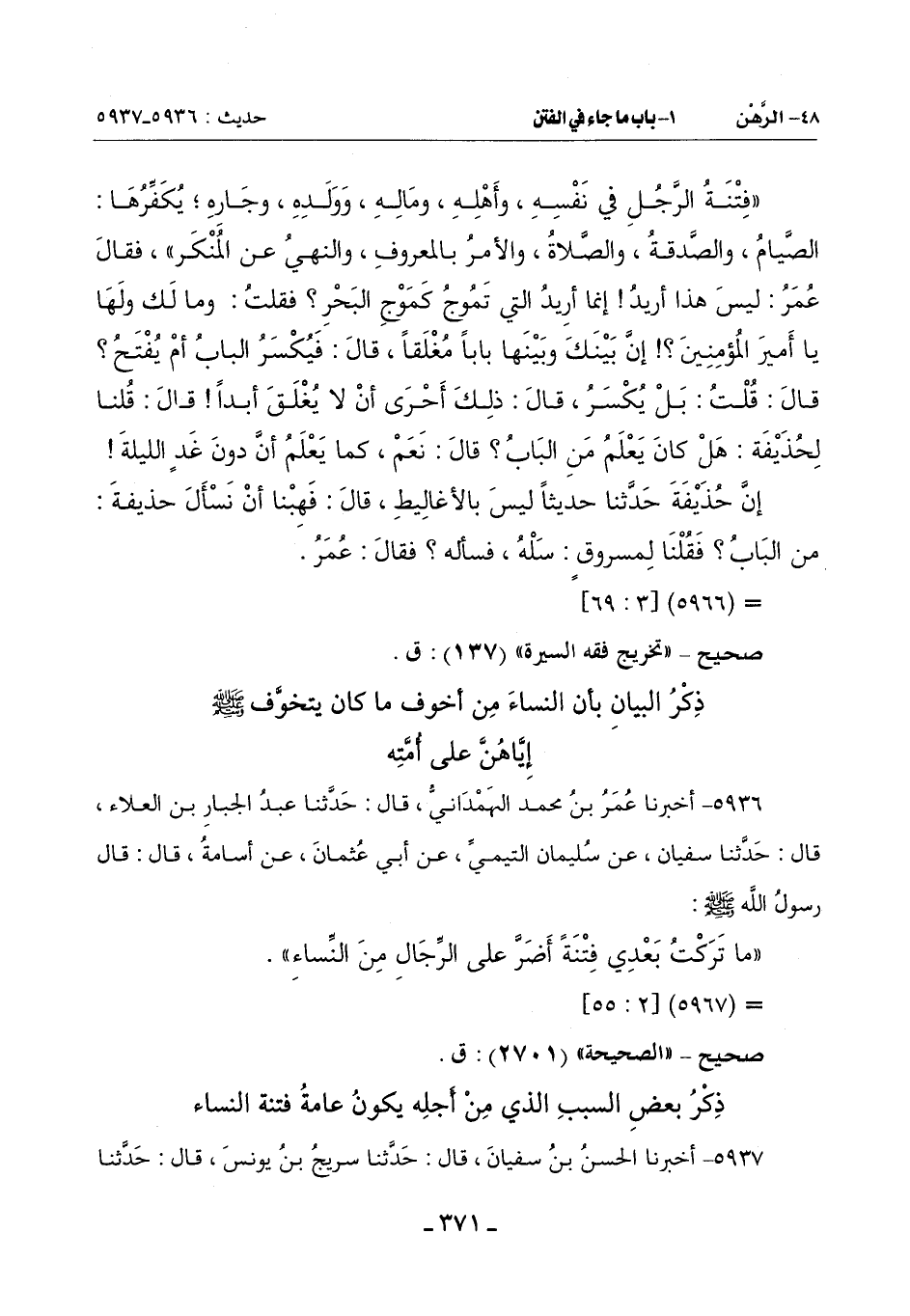 ذِكْرُ بَعْضِ السَّبَبِ الَّذِي مِنْ أَجْلِهِ يَكُونُ عَامَّةُ فِتْنَةِ النِّسَاءِ