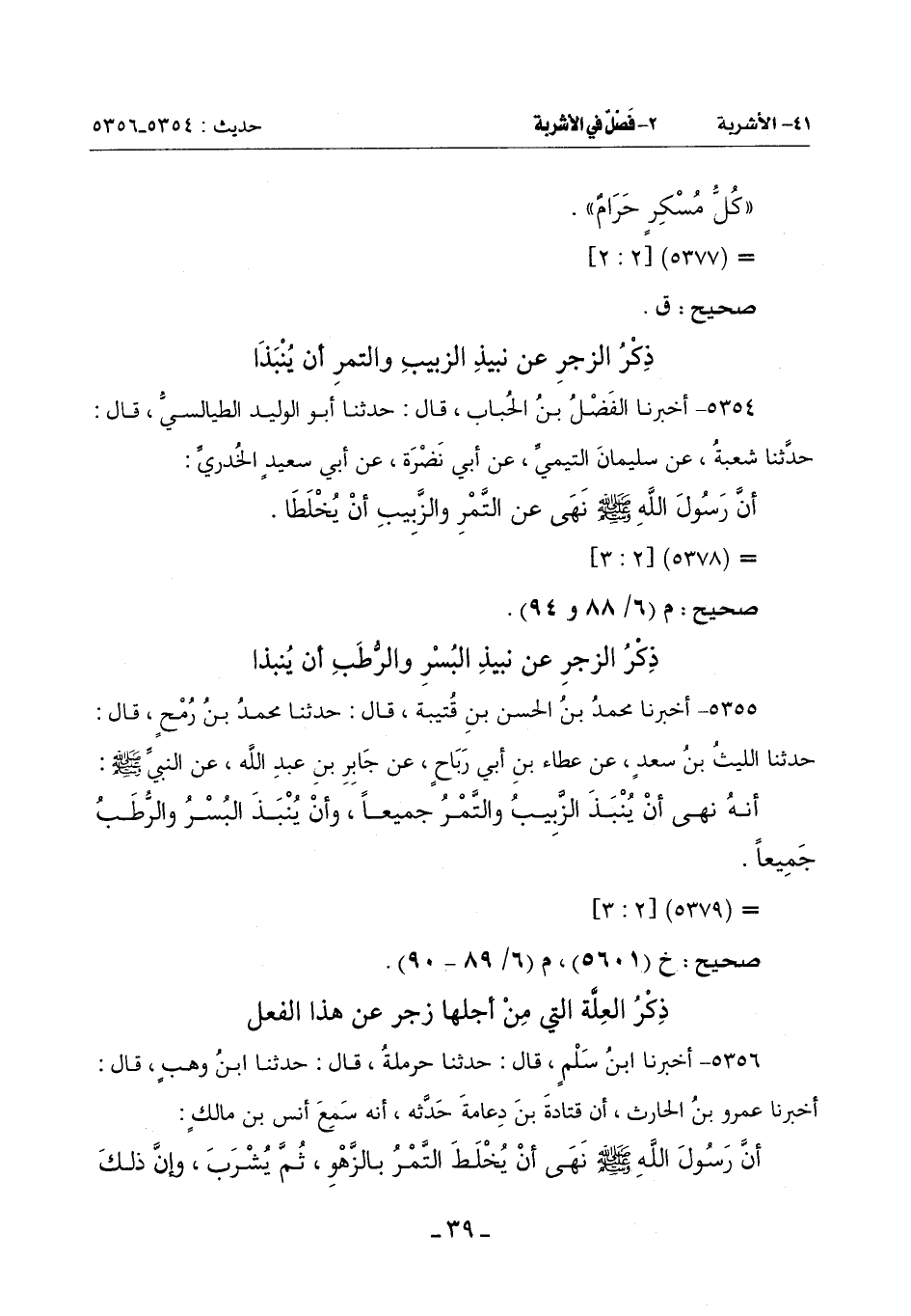 أَنَّ رَسُولَ اللَّهِ صَلَّى اللَّهُ عَلَيْهِ وَسَلَّمَ نَهَى أَنْ يُخلط التَّمْرُ بالزَّهو، ثُمَّ يُشرب وَإِنَّ ذَلِكَ -[40]- عَامَّةُ خمورهم - يوم حُرِّمَتِ الخمر -.