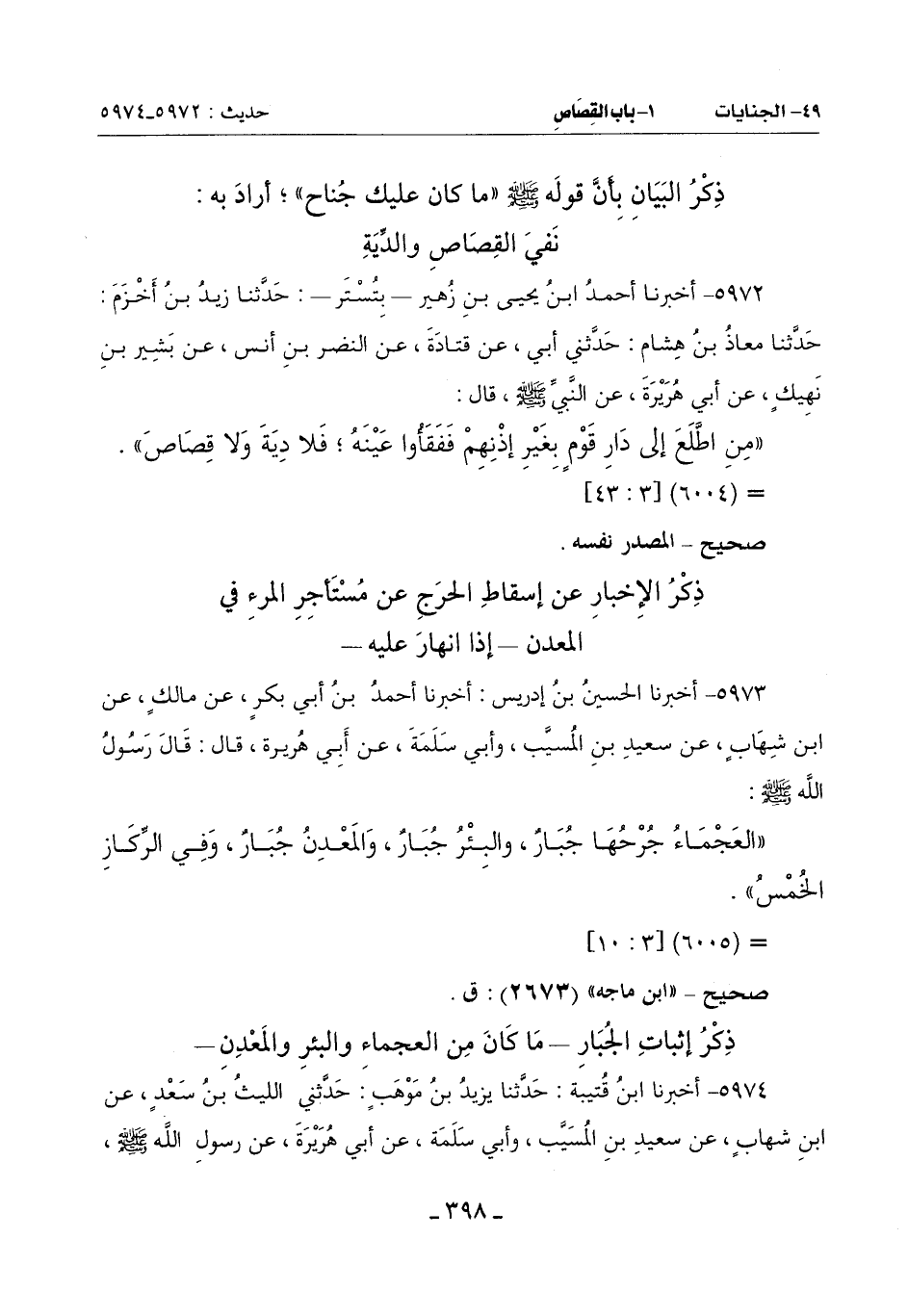 (الْعَجْمَاءُ جُرْحُهَا جُبَارٌ وَالْبِئْرُ جُبَارٌ والمَعْدِنُ جُبَارٌ وفي الرِّكَازِ الخُمْسُ)