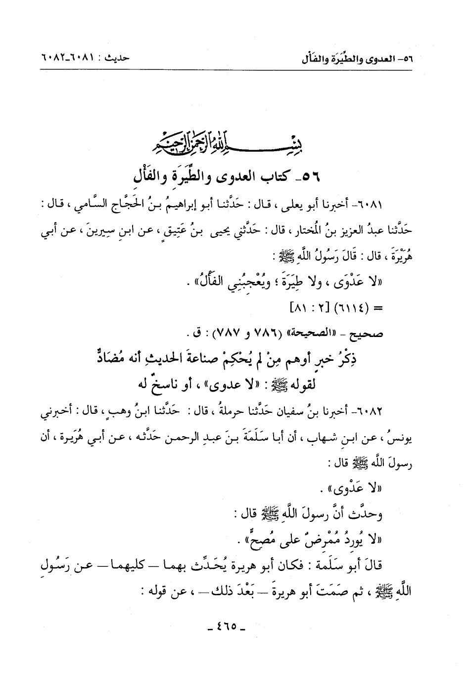 56 - كِتَابُ الْعَدْوَى والطِّيَرَةِ وَالْفَأْلِ