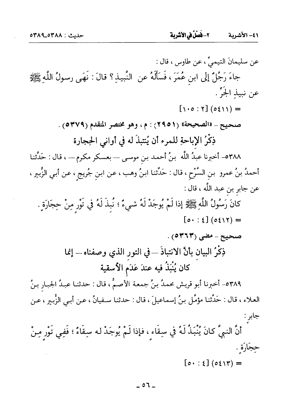 5389 - أَخْبَرَنَا أَبُو قُرَيْشٍ مُحَمَّدُ بْنُ جُمُعَةَ الْأَصَمُّ، قَالَ: حَدَّثَنَا عَبْدُ الْجَبَّارِ بْنُ الْعَلَاءِ، قَالَ: حَدَّثَنَا مُؤَمَّلُ بْنُ إِسْمَاعِيلَ، قَالَ: حَدَّثَنَا سُفْيَانُ، عَنْ أَبِي الزُّبَيْرِ، عَنْ جَابِرٍ: