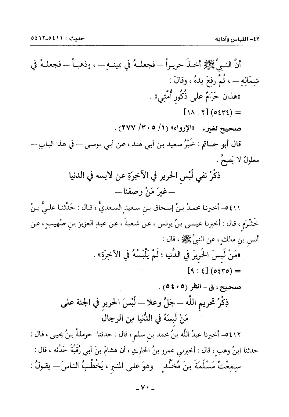 ((مَنْ لَبِسَ الْحَرِيرَ فِي الدُّنْيَا؛ لَمْ يَلْبَسْهُ في الآخرة)).