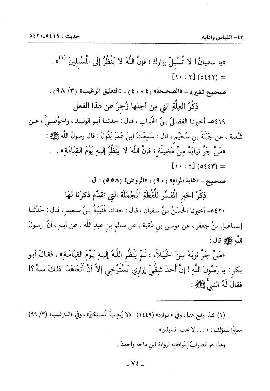 5420 - أَخْبَرَنَا الْحَسَنُ بْنُ سُفْيَانَ، قَالَ: حَدَّثَنَا قُتَيْبَةُ بْنُ سَعِيدٍ، قَالَ: حَدَّثَنَا إِسْمَاعِيلُ بْنُ جَعْفَرٍ، عَنْ مُوسَى بْنِ عُقْبَةَ، عَنْ سَالِمِ بْنِ عَبْدِ اللَّهِ، عَنْ أَبِيهِ، أَنَّ رَسُولَ اللَّهِ صَلَّى اللَّهُ عَلَيْهِ وَسَلَّمَ قَالَ: