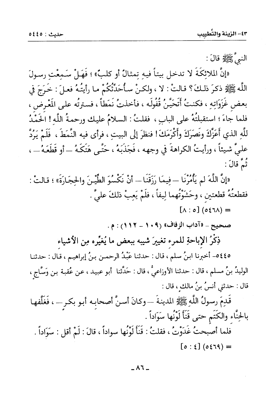 5445 - أَخْبَرَنَا ابْنُ سَلْمٍ قَالَ حَدَّثَنَا عَبْدُ الرَّحْمَنِ بْنُ إِبْرَاهِيمَ قَالَ: حَدَّثَنَا الْوَلِيدُ بْنُ مُسْلِمٍ قَالَ: حَدَّثَنَا الْأَوْزَاعِيُّ قَالَ: حَدَّثَنَا أَبُو عُبَيْدٍ عَنْ عُقْبَةَ بْنِ وَسَّاجٍ قَالَ: حَدَّثَنِي أَنَسُ بْنُ مَالِكٍ قَالَ: