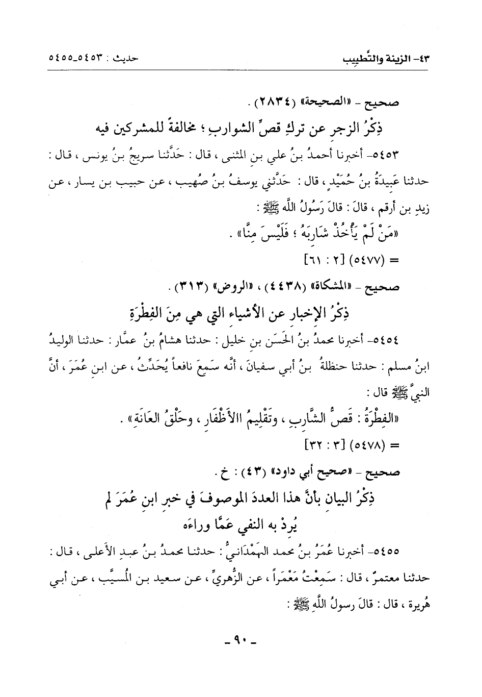 5455 - أَخْبَرَنَا عُمَرُ بْنُ مُحَمَّدٍ الْهَمْدَانِيُّ: حَدَّثَنَا مُحَمَّدُ بْنُ عَبْدِ الْأَعْلَى، قَالَ: حَدَّثَنَا مُعْتَمِرٌ، قَالَ: سَمِعْتُ مَعْمَرًا، عَنِ الزُّهْرِيِّ، عَنْ سَعِيدِ بْنِ الْمُسَيِّبِ، عَنْ أَبِي هُرَيْرَةَ، قَالَ: قَالَ رَسُولُ اللَّهِ صَلَّى اللَّهُ عَلَيْهِ وَسَلَّمَ: -[91]-