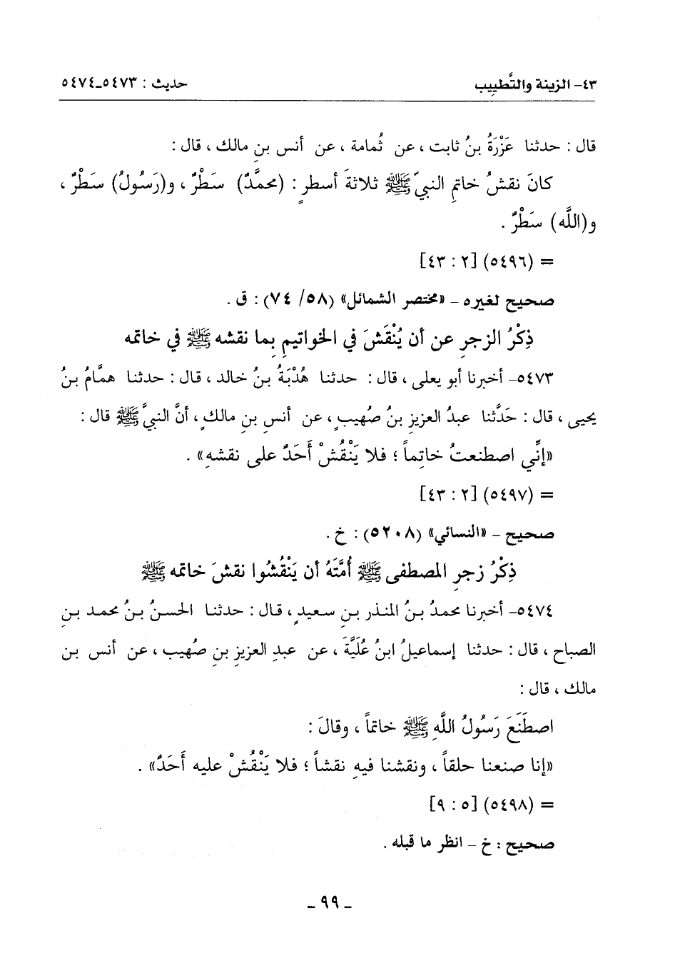 ذِكْرُ زَجْرِ الْمُصْطَفَى صَلَّى اللَّهُ عَلَيْهِ وَسَلَّمَ أُمَّتَهُ أَنْ يَنْقُشُوا نَقْشَ خَاتَمِهِ صَلَّى اللَّهُ عَلَيْهِ وَسَلَّمَ