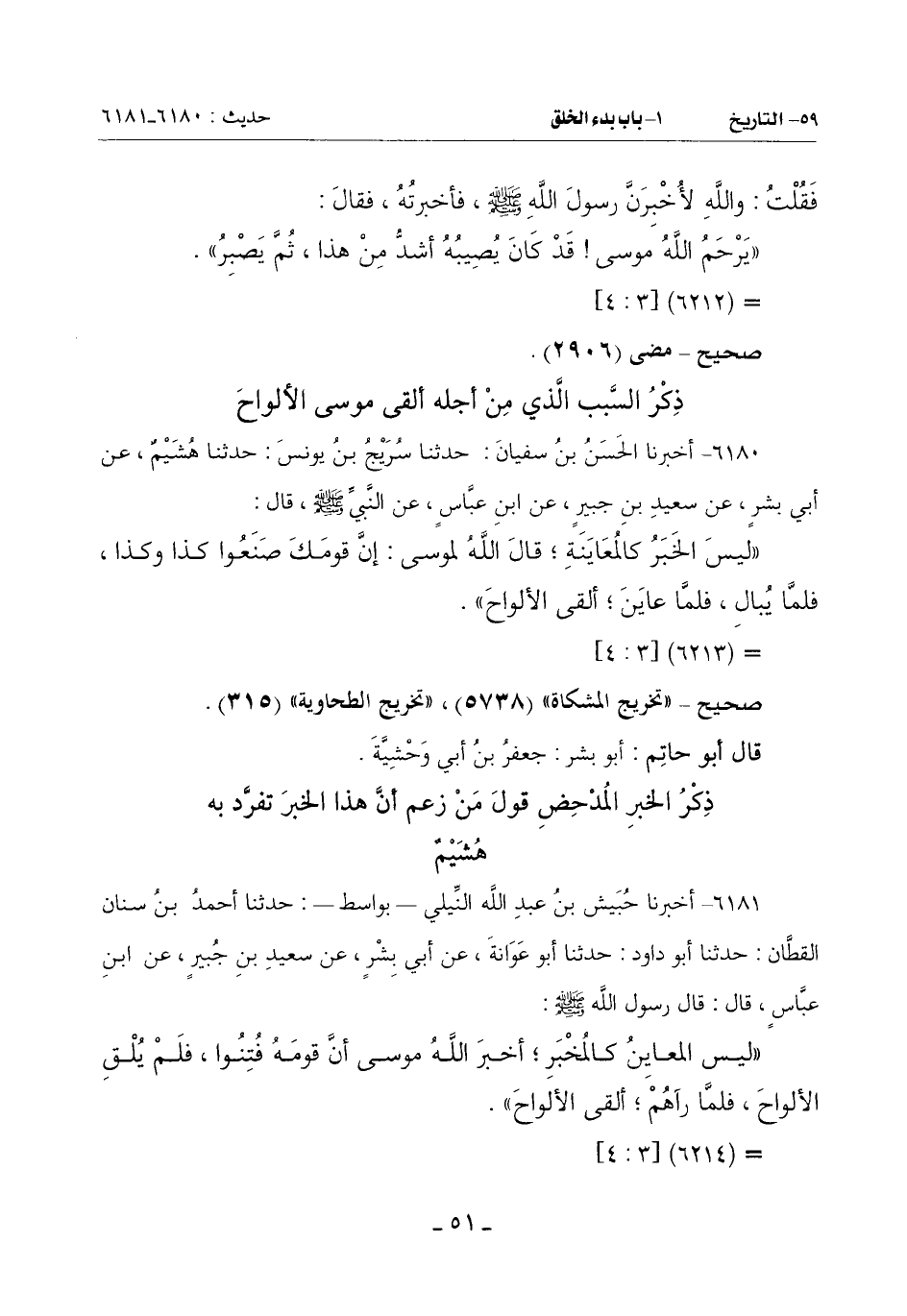 (لَيْسَ الْخَبَرُ كَالْمُعَايَنَةِ قَالَ اللَّهُ لِمُوسَى: إِنَّ قَوْمَكَ صَنَعُوا كَذَا وَكَذَا فَلَمَّا يُبال فَلَمَّا عَايَنَ ألقى الألواح)
