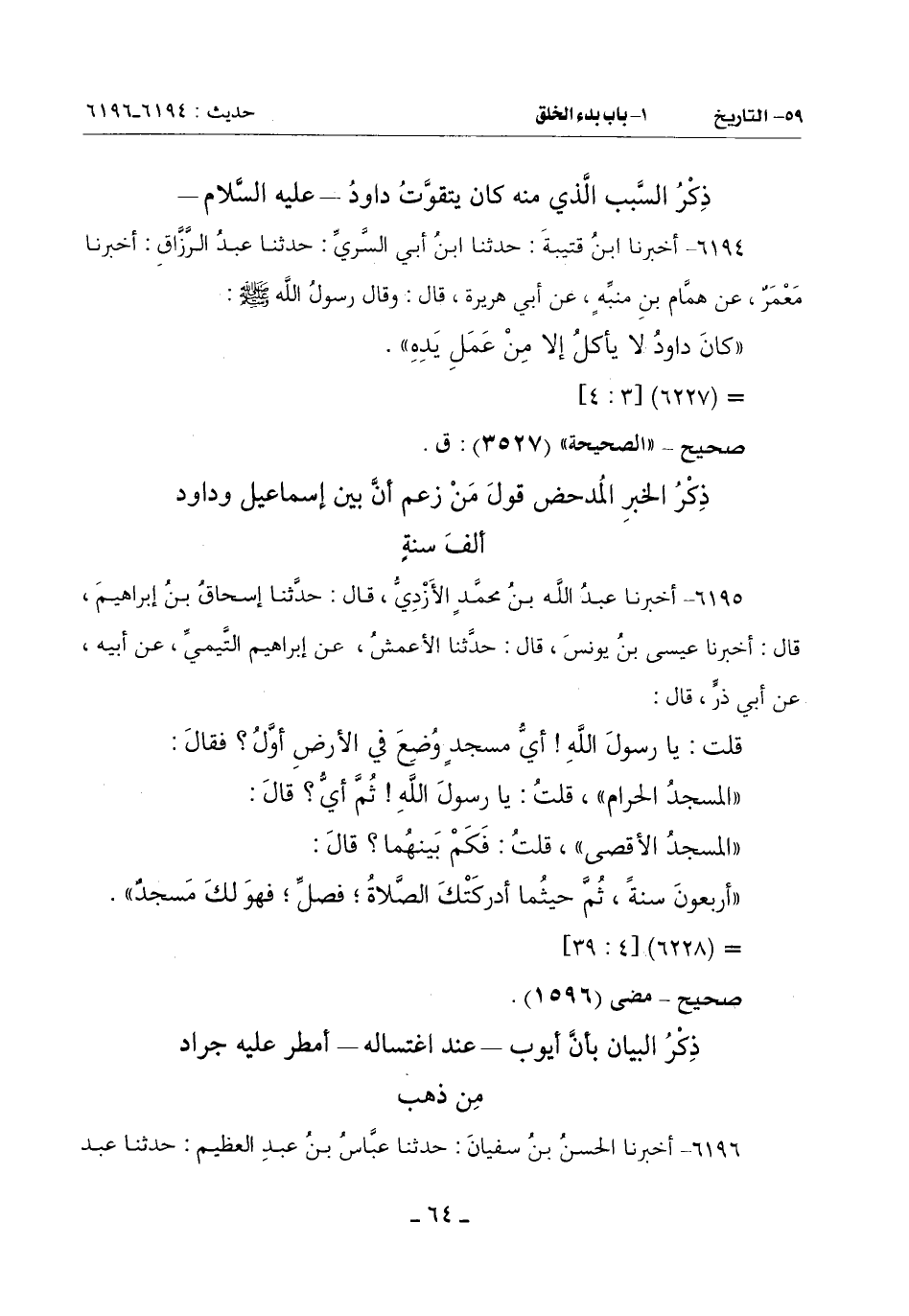 ذِكْرُ السَّبَبِ الَّذِي مِنْهُ كَانَ يتقوَّت دَاوُدُ عليه السلام