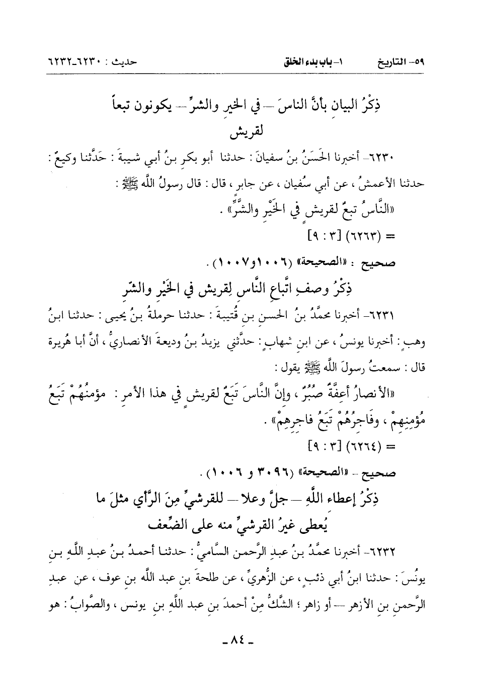 ذِكْرُ الْبَيَانِ بِأَنَّ النَّاسَ ـ فِي الْخَيْرِ وَالشَّرِّ ـ يَكُونُونَ تَبَعًا لِقُرَيْشٍ