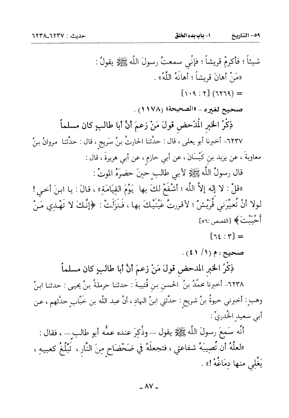 ذِكْرُ الْخَبَرِ الْمُدْحِضِ قَوْلَ مَنْ زَعَمَ أَنَّ أَبَا طَالِبٍ كَانَ مُسْلِمًا