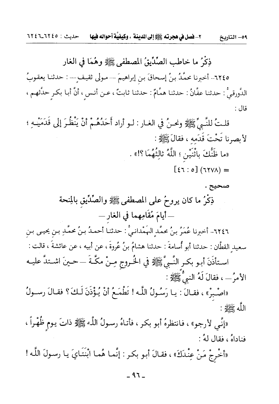 (أَشَعَرْتَ أَنَّهُ قَدْ أُذِنَ لِي فِي الْخُرُوجِ)؟ فَقَالَ: يَا رَسُولَ اللَّهِ الصُّحْبَةَ فَقَالَ النَّبِيُّ صَلَّى اللَّهُ عَلَيْهِ وَسَلَّمَ: