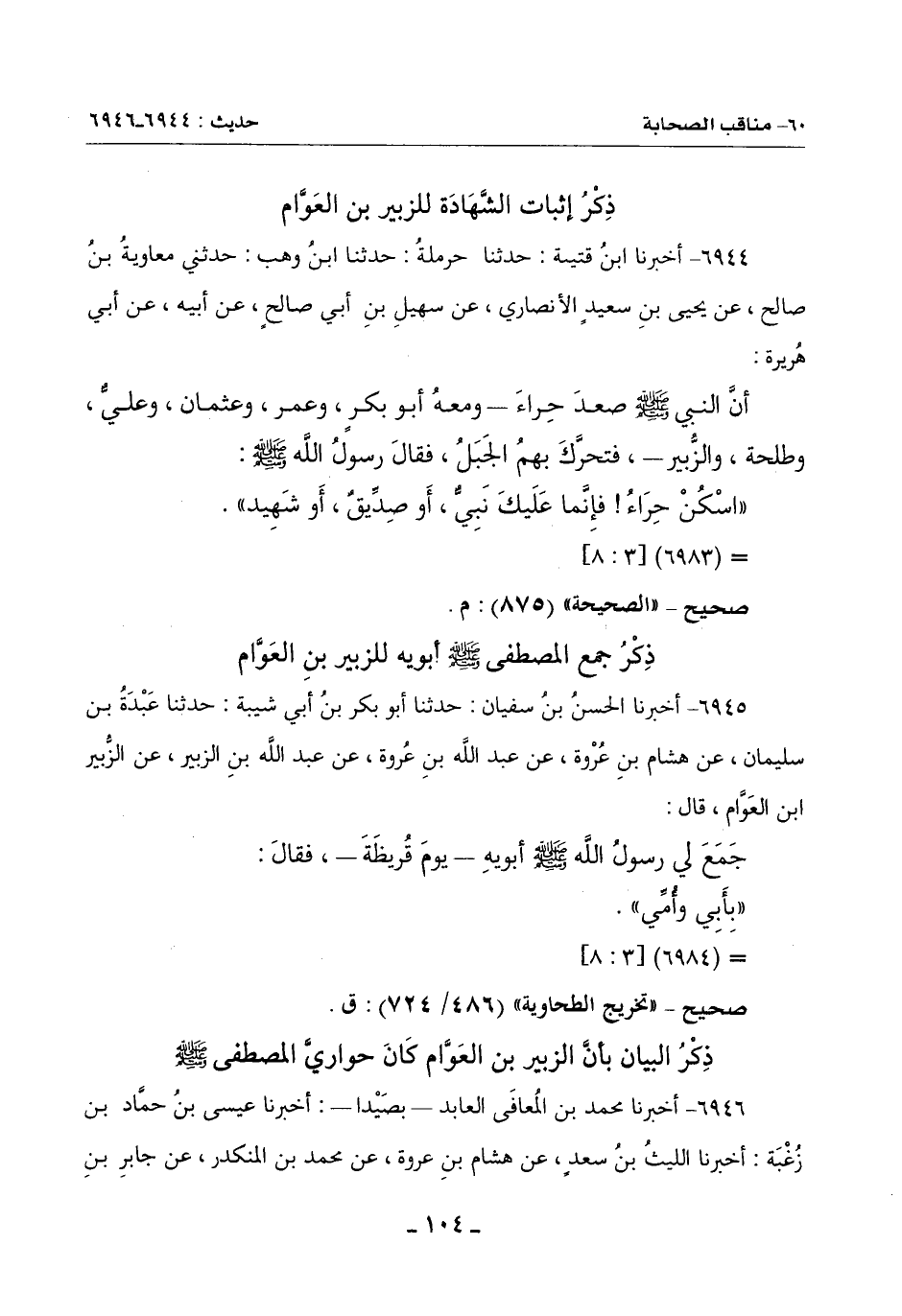 ذِكْرُ إِثْبَاتِ الشَّهَادَةِ لِلزُّبَيْرِ بْنِ الْعَوَّامِ
