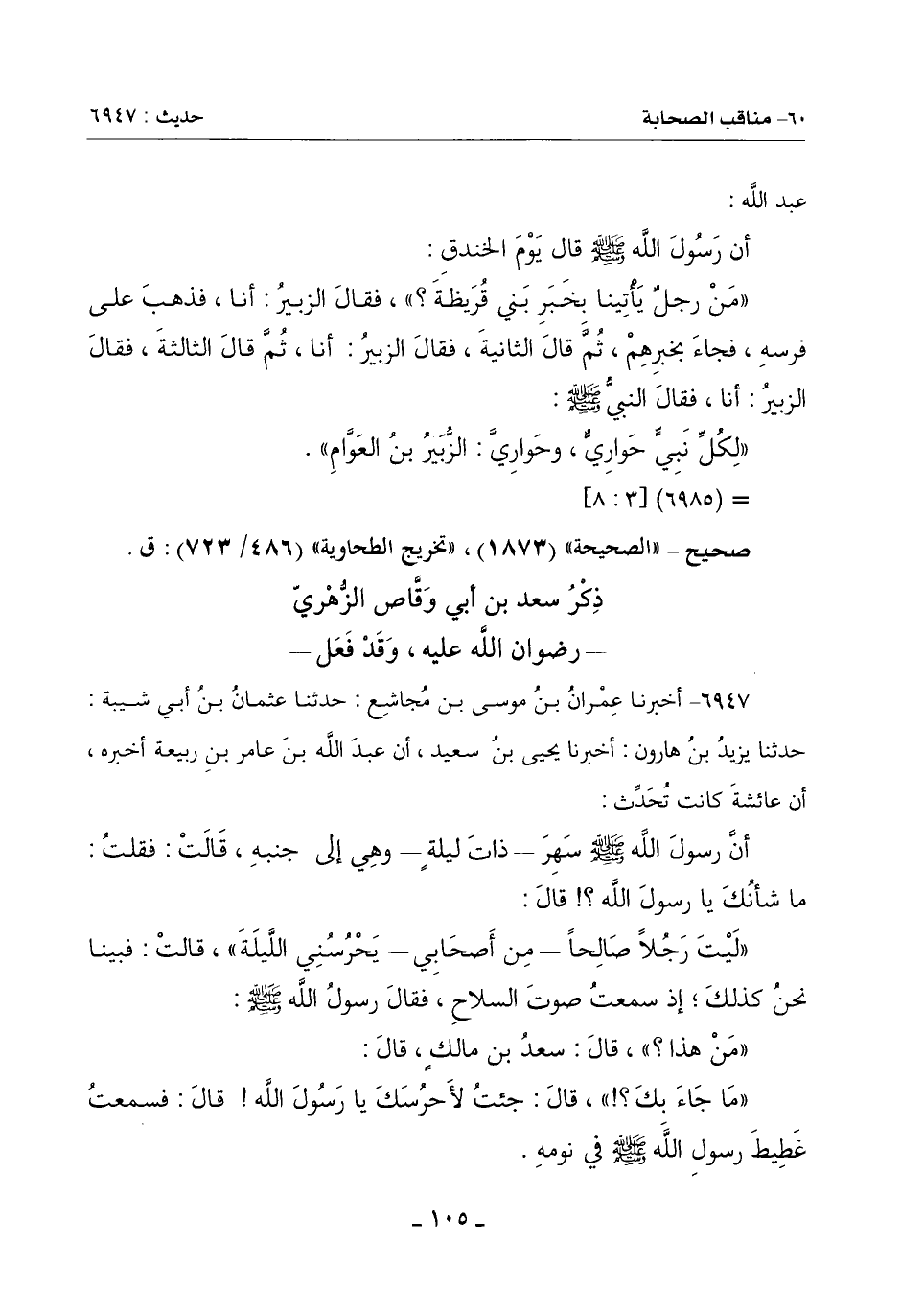 ذِكْرُ سَعْدِ بْنِ أَبِي وَقَّاصٍ الزُّهْرِيِّ رِضْوَانُ اللَّهِ عَلَيْهِ وَقَدْ فَعَلَ