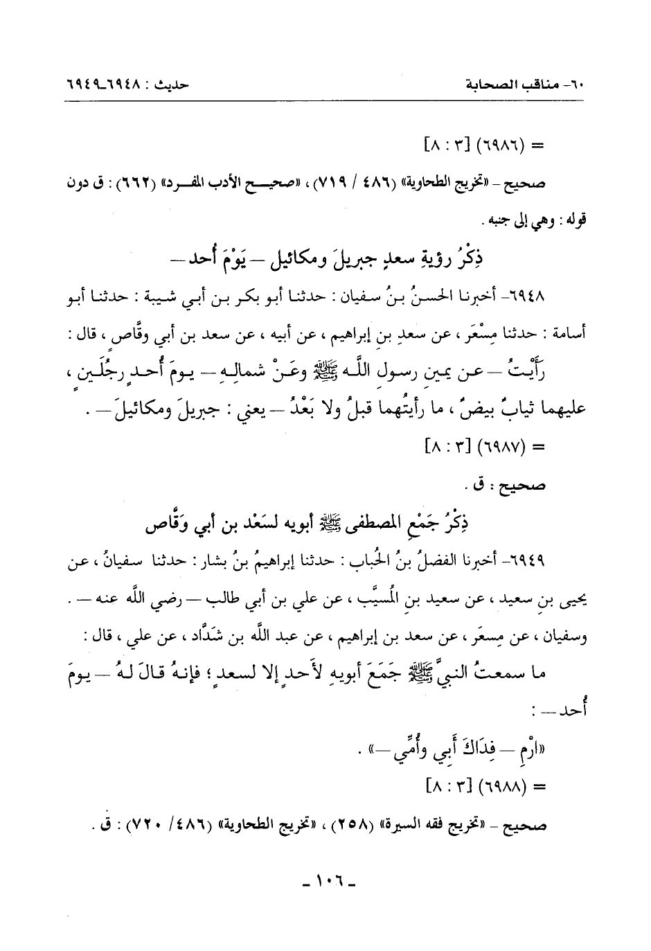 ذِكْرُ جَمْعِ الْمُصْطَفَى صَلَّى اللَّهُ عَلَيْهِ وَسَلَّمَ أَبَوَيْهِ لِسَعْدِ بْنِ أَبِي وَقَّاصٍ