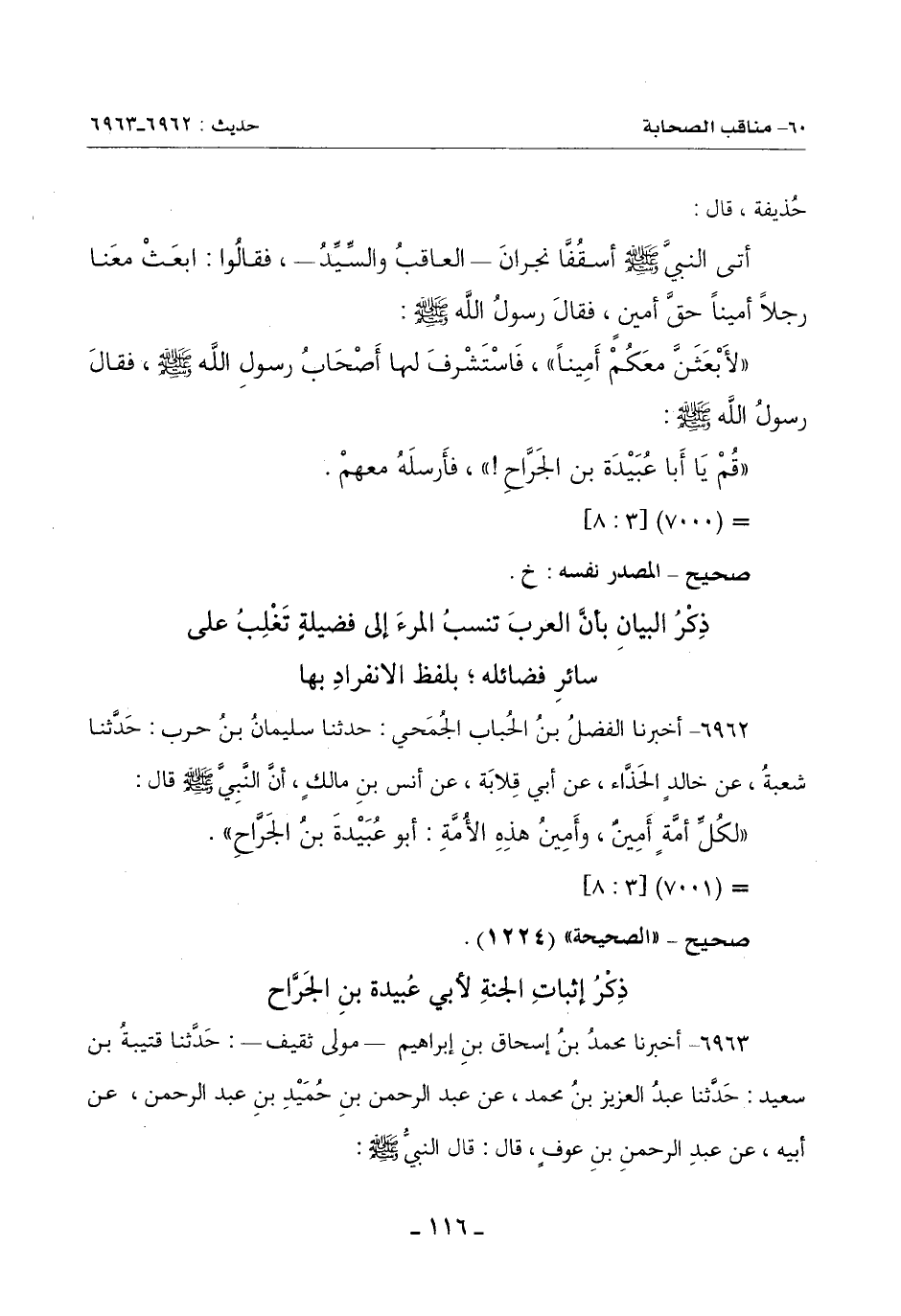 (لِكُلِّ أُمَّةٍ أمينٌ وَأَمِينُ هَذِهِ الْأُمَّةِ أَبُو عبيدة بن الجراح)