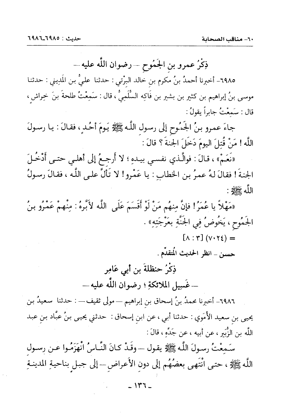 ذِكْرُ عَمْرِو بْنِ الْجَمُوحِ رِضْوَانُ اللَّهِ عَلَيْهِ