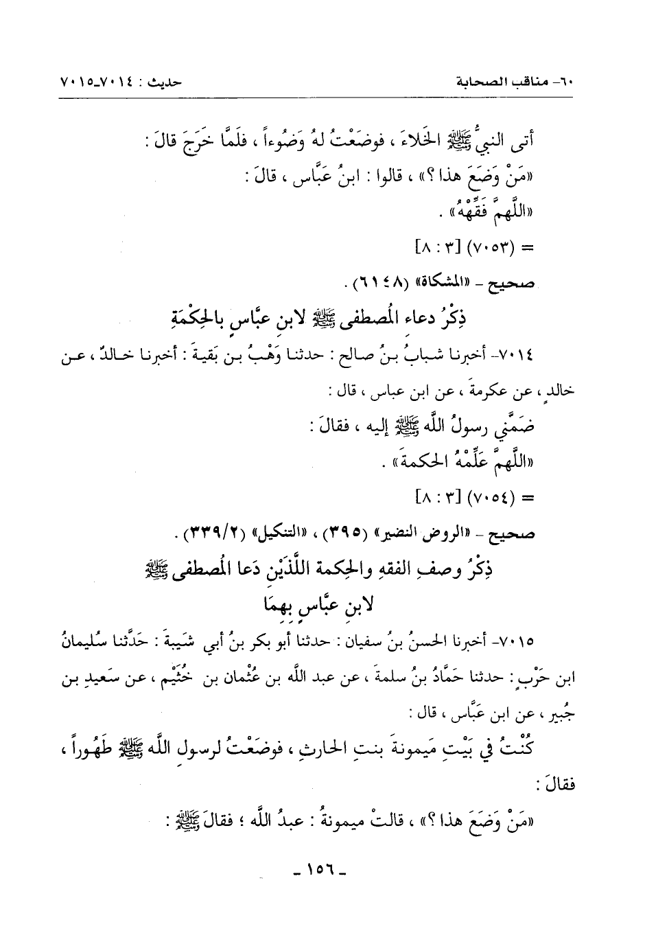 ذِكْرُ دُعَاءِ الْمُصْطَفَى صَلَّى اللَّهُ عَلَيْهِ وَسَلَّمَ لِابْنِ عَبَّاسٍ بِالْحِكْمَةِ