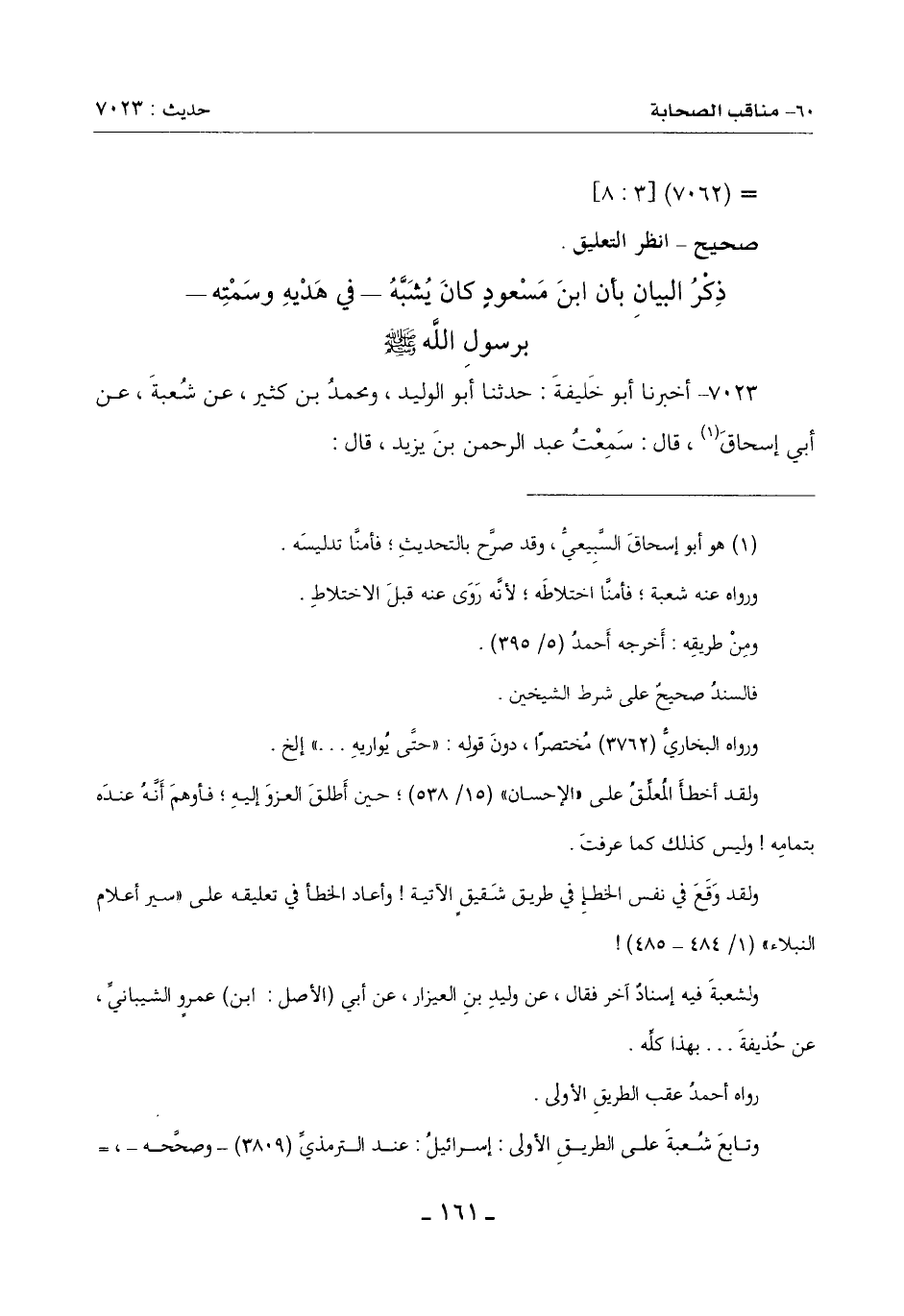ولقد وقع في نفس الخطإ في طريق شقيق الآتية! وأعاد الخطأ في تعليقه على ((سير أعلام النبلاء)) (1/ 484 ـ 485)!