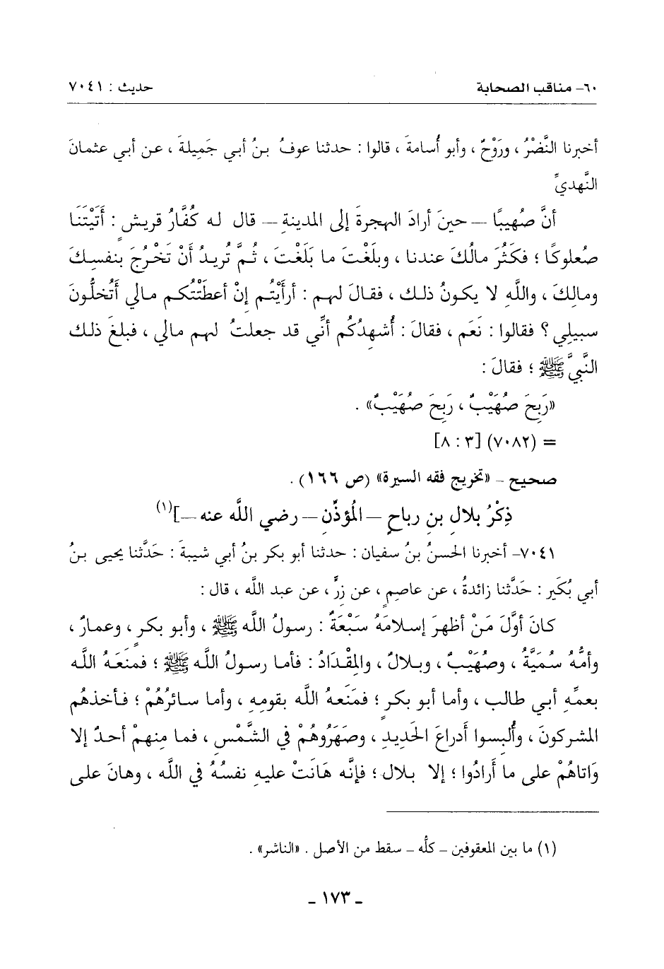 ذِكرُ بِلَالِ بْنِ رَبَاحٍ - الُمؤذِّنِ - رَضِيَ اللَّهُ عنه -] (¬1)