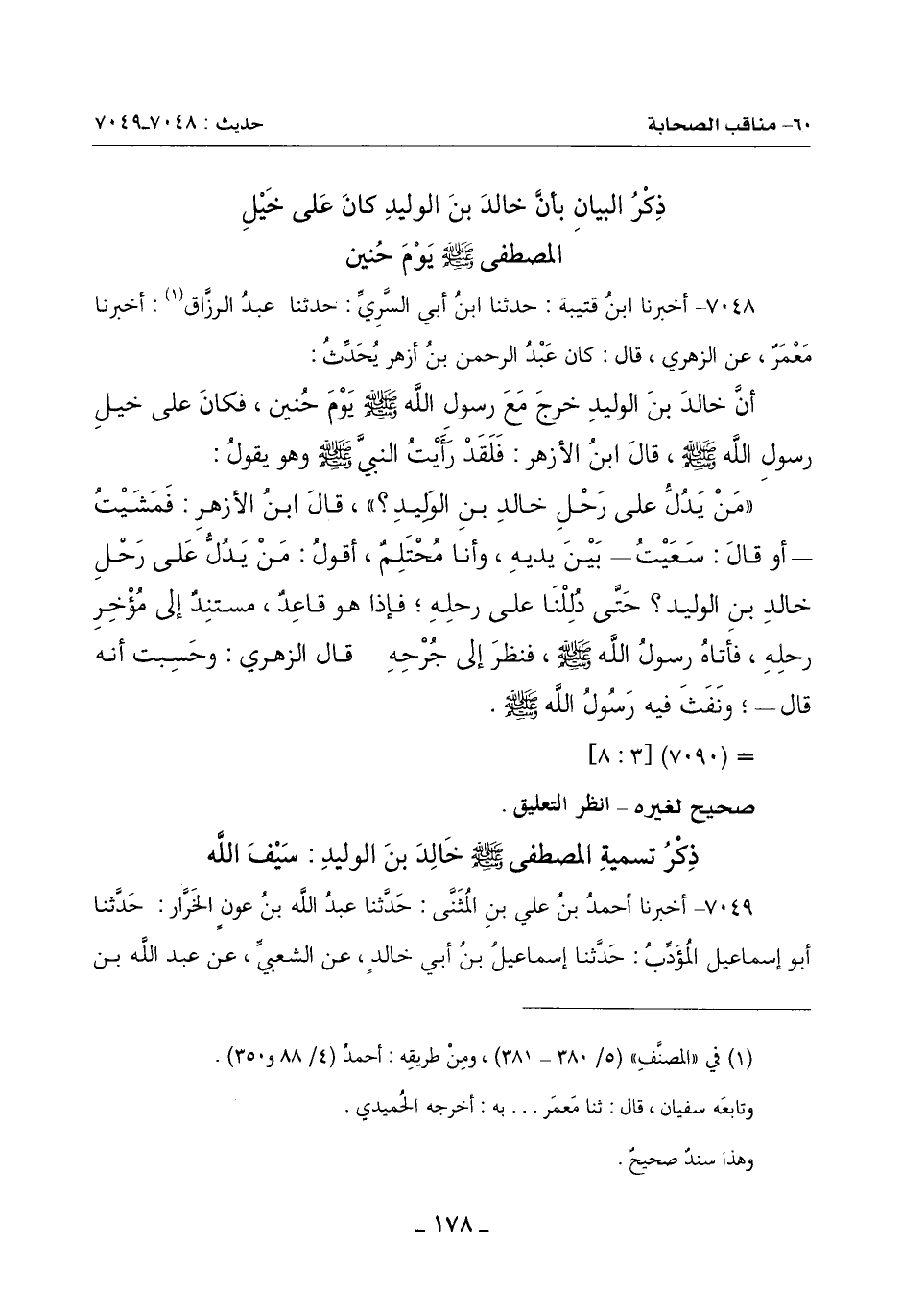 أَنَّ خَالِدَ بْنَ الْوَلِيدِ خَرَجَ مَعَ رَسُولِ اللَّهِ صَلَّى اللَّهُ عَلَيْهِ وَسَلَّمَ يَوْمَ حُنَيْنٍ فَكَانَ عَلَى خَيْلِ رَسُولِ اللَّهِ صَلَّى اللَّهُ عَلَيْهِ وَسَلَّمَ قَالَ ابْنُ الْأَزْهَرِ: فَلَقَدْ رَأَيْتُ النَّبِيَّ صَلَّى اللَّهُ عَلَيْهِ وَسَلَّمَ وَهُوَ يقول: