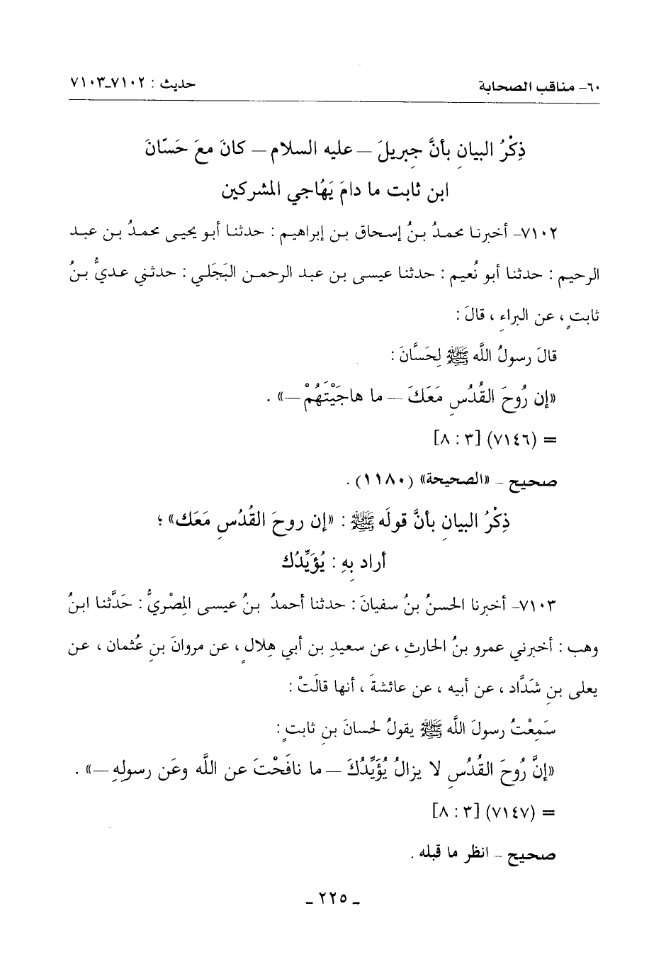 ذِكْرُ الْبَيَانِ بِأَنَّ جِبْرِيلَ عَلَيْهِ السَّلَامُ كَانَ مع حسان بن ثابت ما دام يهاجي المشركين