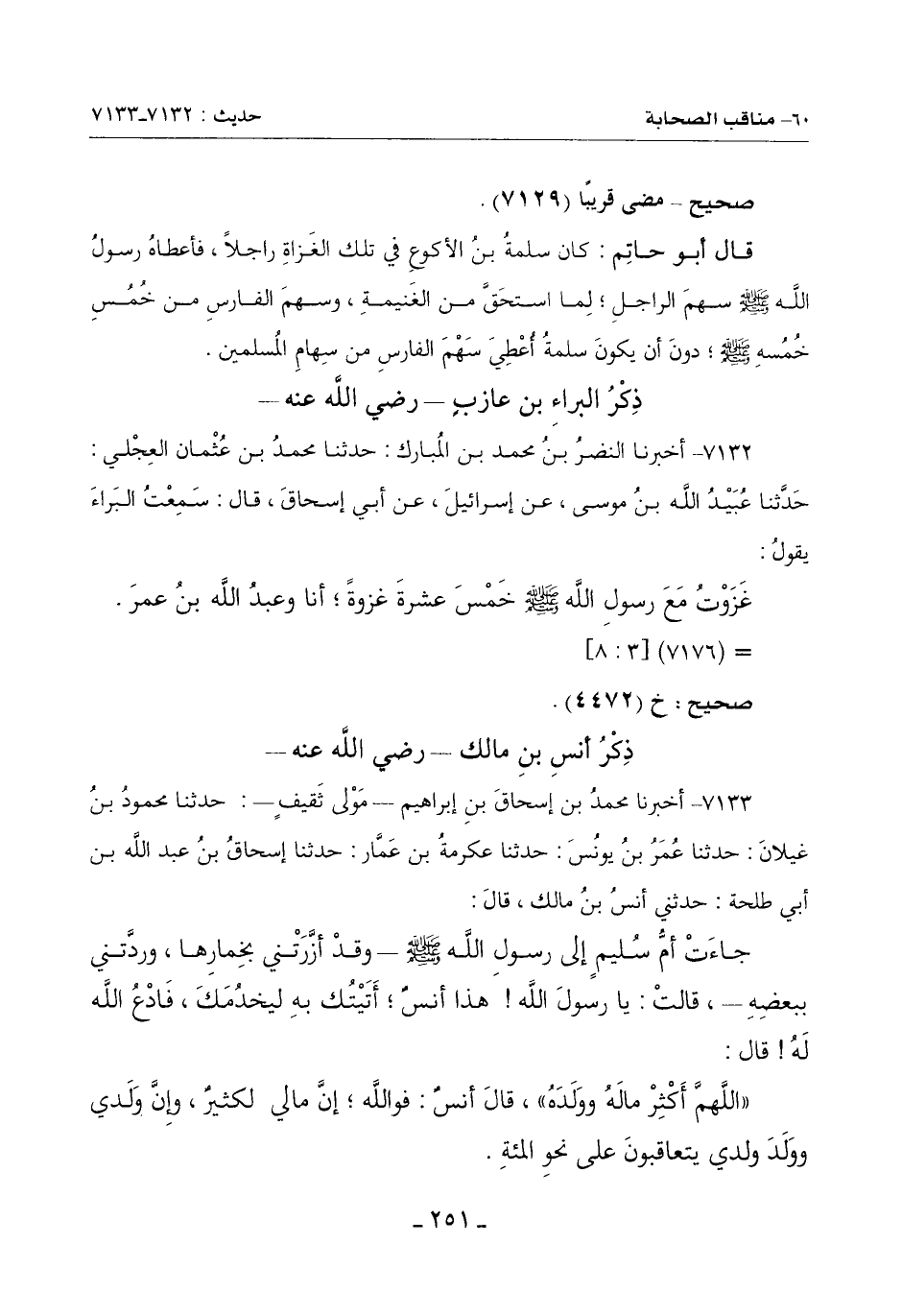 ذِكْرُ أَنَسِ بْنِ مَالِكٍ رَضِيَ اللَّهُ عَنْهُ
