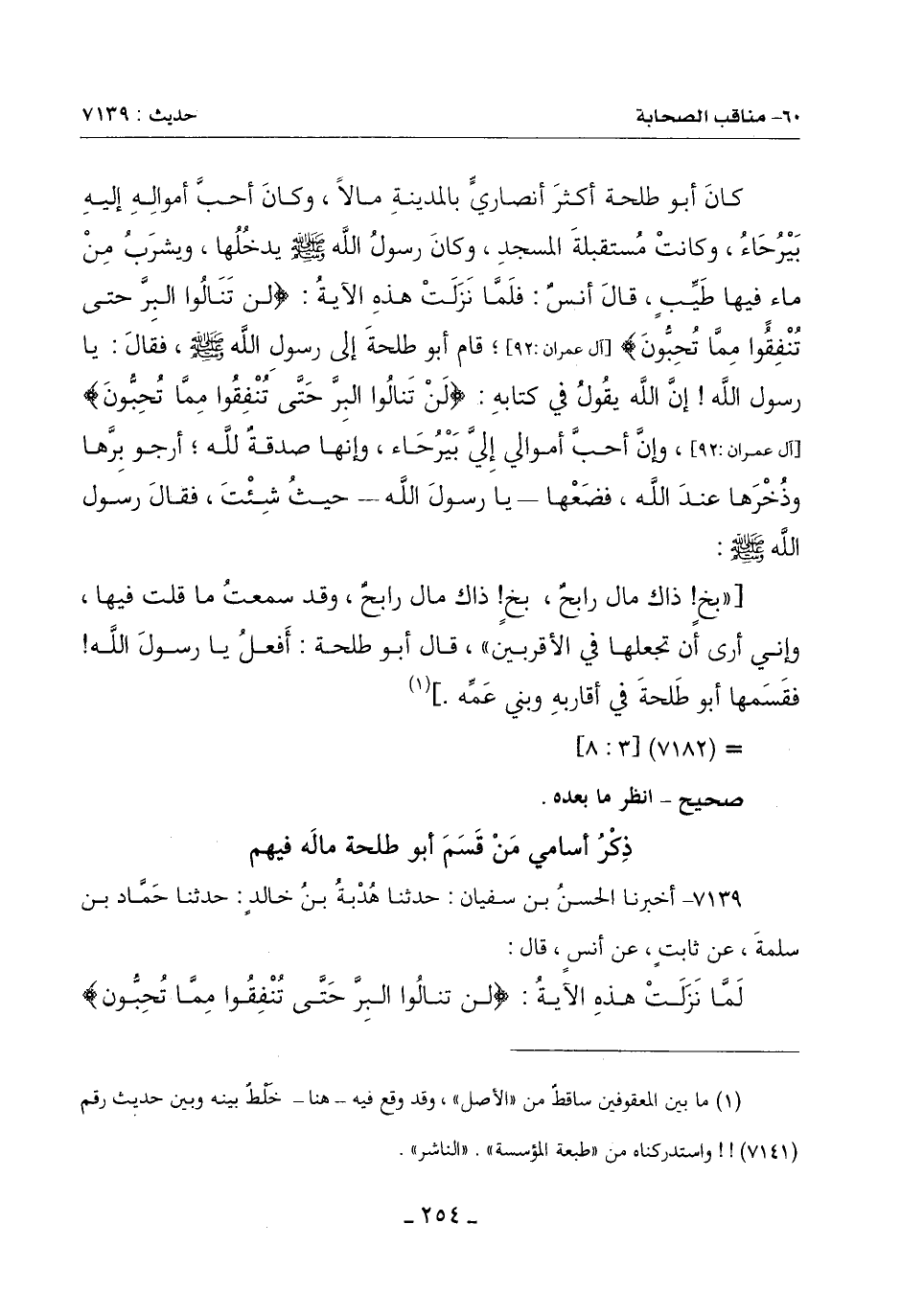 ذِكْرُ أَسَامِي مَنْ قَسَمَ أَبُو طَلْحَةَ مَالَهُ فيهم