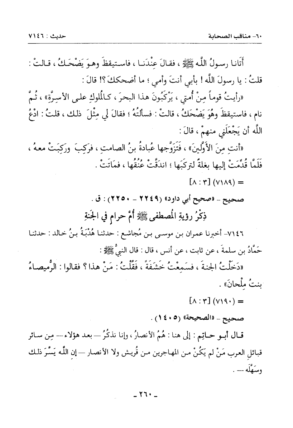 ذكر رؤوية الْمُصْطَفَى صَلَّى اللَّهُ عَلَيْهِ وَسَلَّمَ أُمَّ حَرَامٍ في الجنة