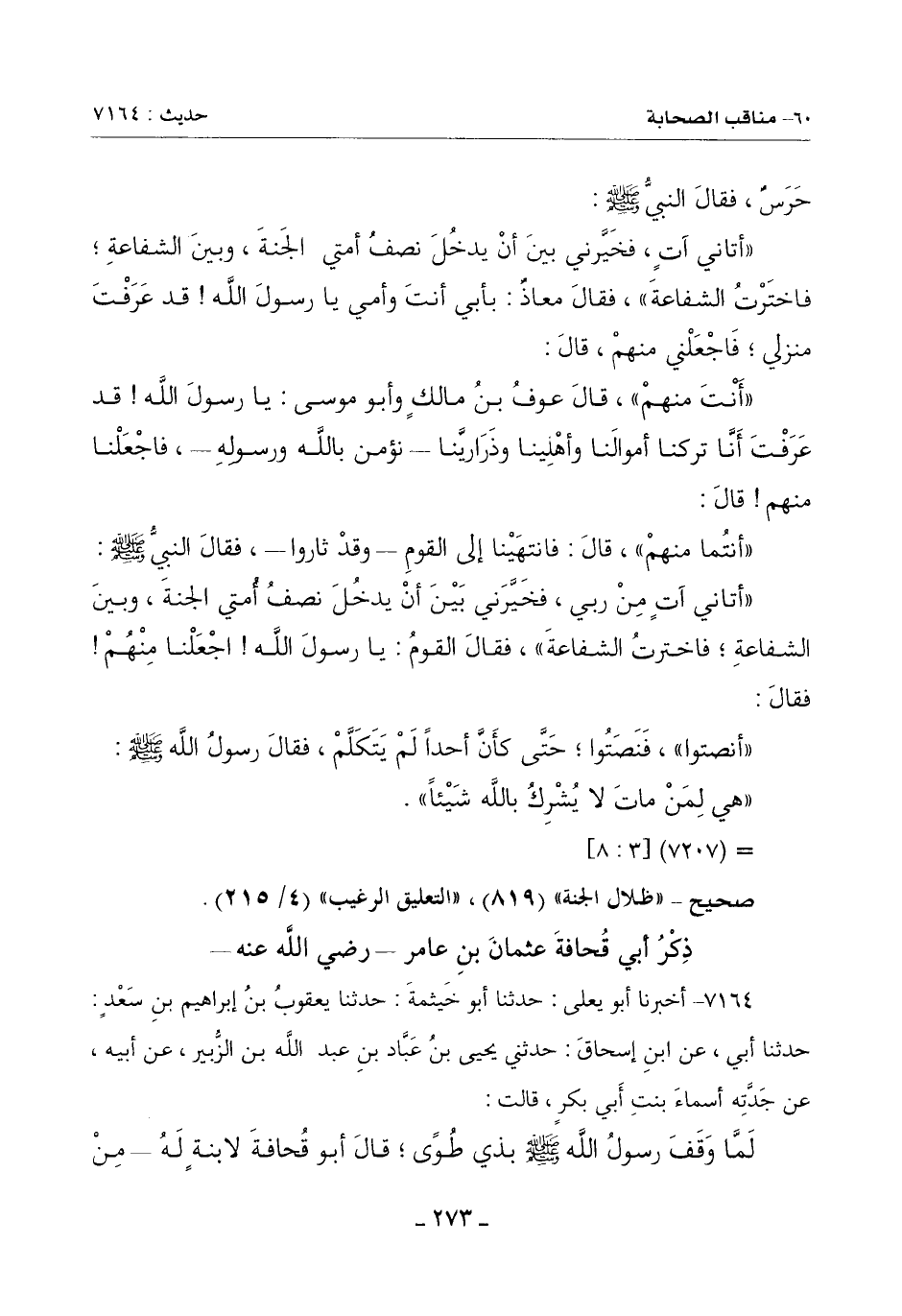ذِكْرُ أَبِي قُحَافَةَ عُثْمَانَ بْنِ عَامِرٍ رَضِيَ الله عنه