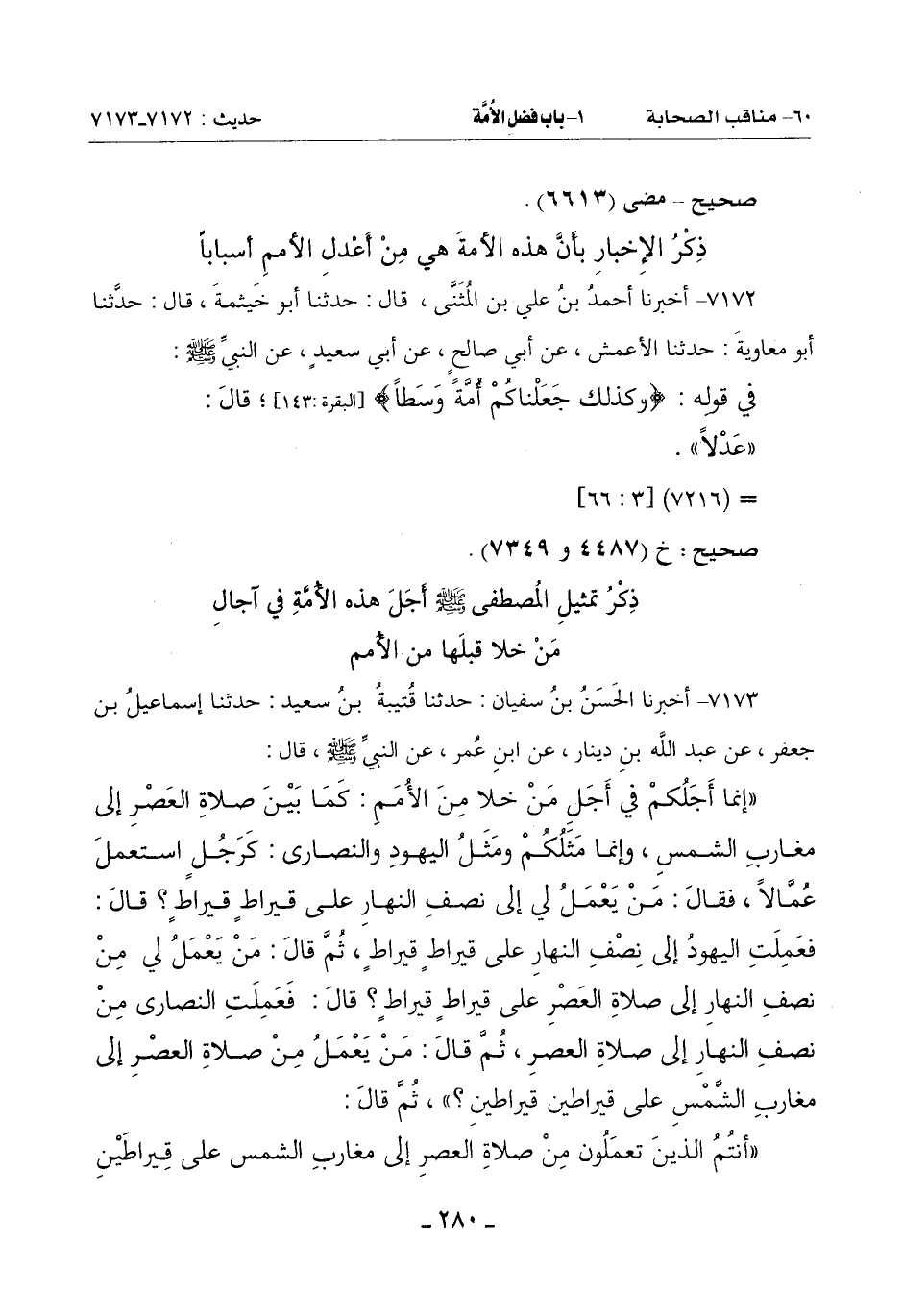 7173 - أَخْبَرَنَا الْحَسَنُ بْنُ سُفْيَانَ حَدَّثَنَا قُتَيْبَةُ بْنُ سَعِيدٍ حَدَّثَنَا إِسْمَاعِيلُ بْنُ جَعْفَرٍ عَنْ عَبْدِ اللَّهِ بْنِ دِينَارٍ عَنِ ابْنِ عُمَرَ: عَنِ النَّبِيِّ صَلَّى اللَّهُ عَلَيْهِ وَسَلَّمَ قَالَ: